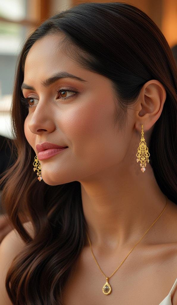 Enhance your understated boho luxe outfit with the timeless beauty of these gold dangle earrings. The delicate feminine detailing and understated boho chic style add a touch of sophistication and romance to any ensemble.