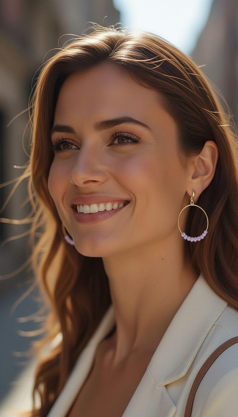 The perfect blend of casual and fancy, they are ideal purple earrings for both special occasions and everyday wear. These lightweight statement hoops add a touch of sophistication and timeless elegance to any outfit. Elevate your boho chic style and radiate femininity with our contemporary light purple hoop earrings, these shimmery purple earrings are a must-have addition to your glass jewelry collection.