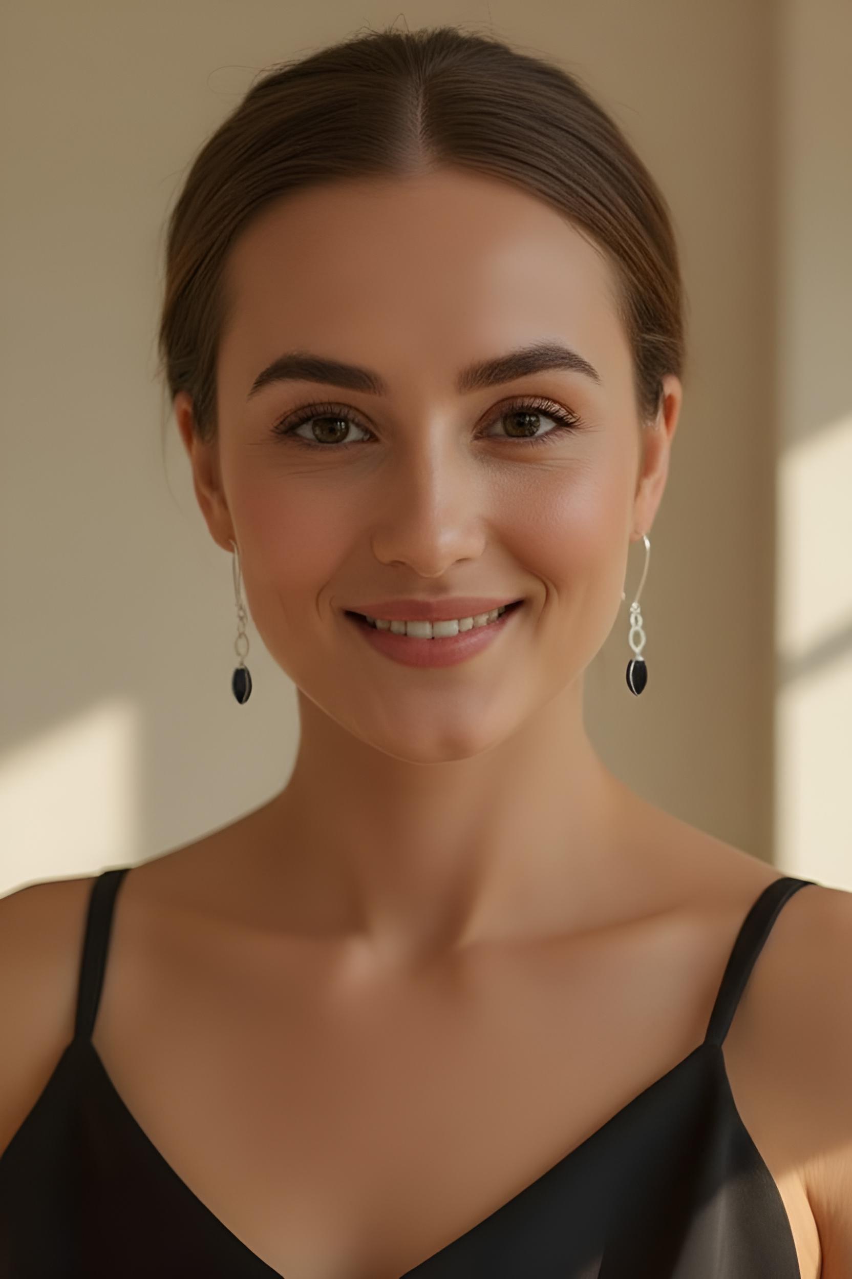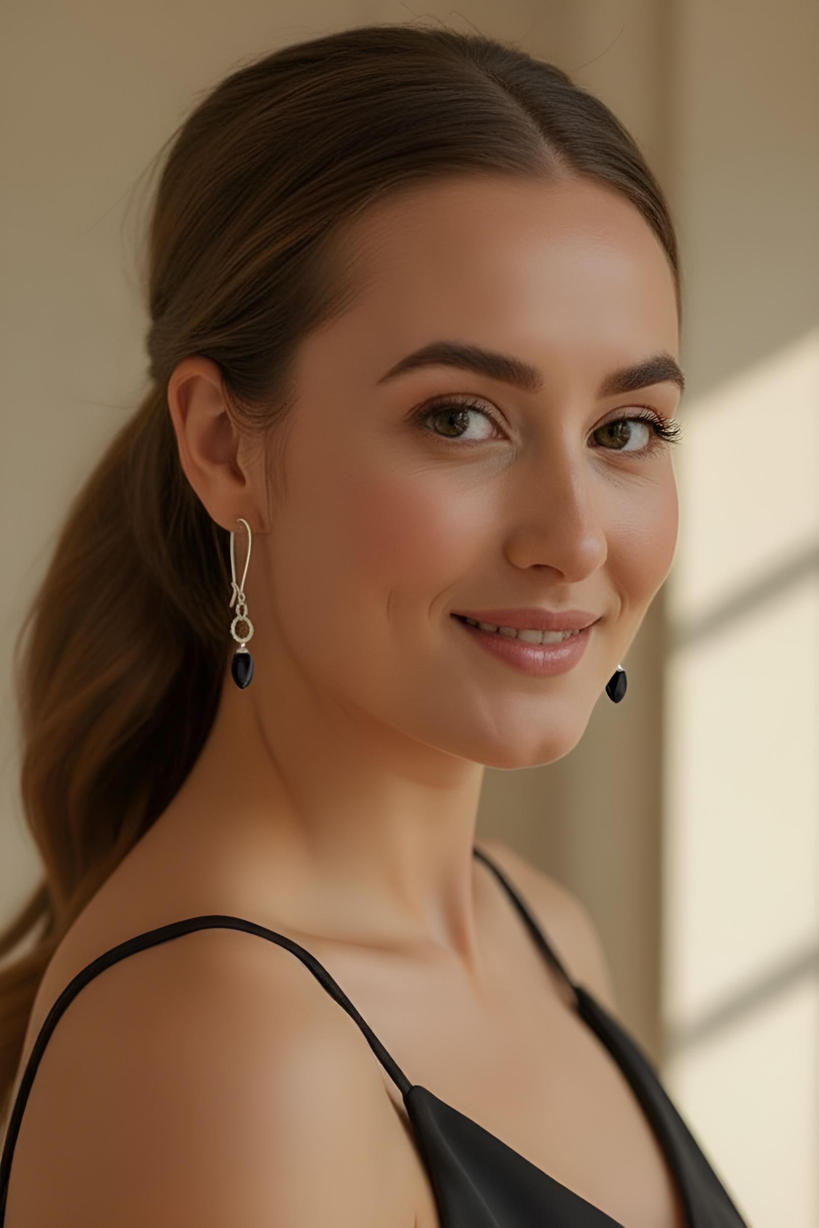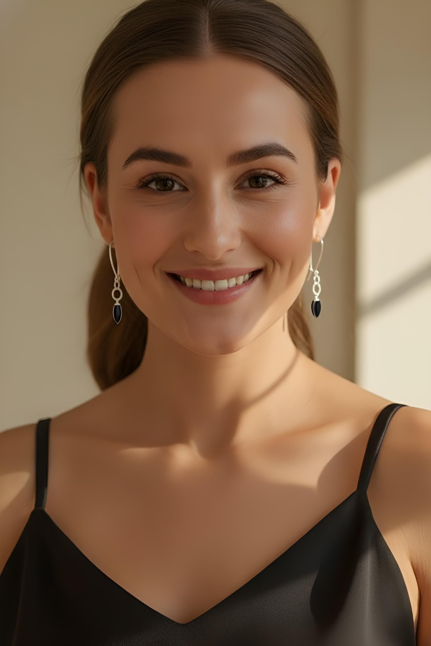 The deep, mysterious beauty of shimmery black gemstones is paired with a minimalist modern silhouette, making these black gemstone earrings ideal for both day and night. Whether you’re heading to the office, dressing up for a dinner date, or adding a bold touch to your weekend look, these silver drop earrings are versatile enough to carry you through it all.