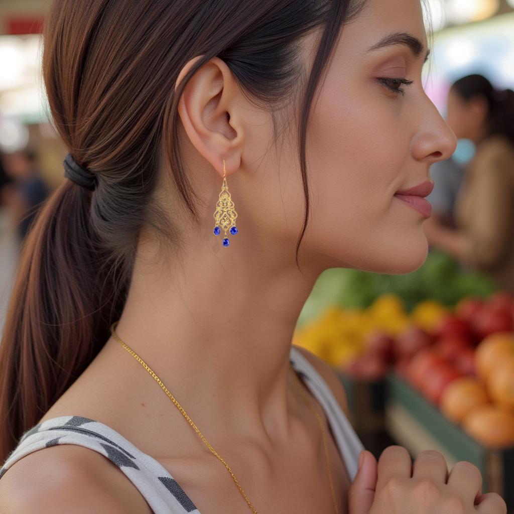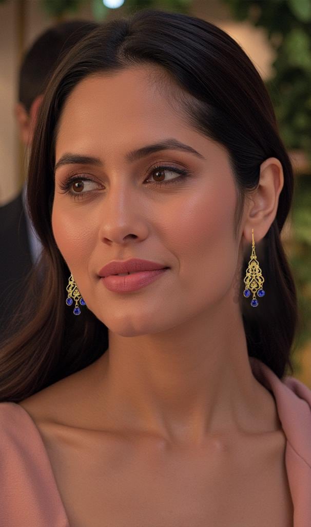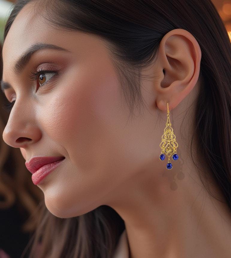 These chandelier-style earrings are a must-have for anyone who loves versatile and timeless pieces in their crystal Jewelry Collection. Their lightweight design ensures all-day comfort, while the stunning combination of gold and dark blue makes them an exquisite addition to your blue accessories collection. Whether dressing up for a special event or adding a touch of refinement to your everyday look, these pretty boho chic gold crystal earrings are the perfect choice.