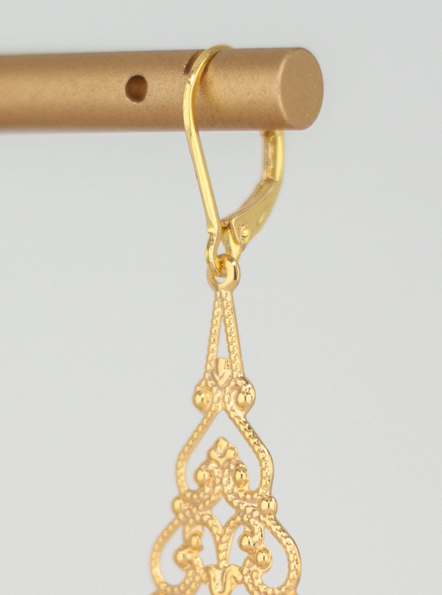 • Crafted from gold-plated filigree and gold-plated lever backs.
