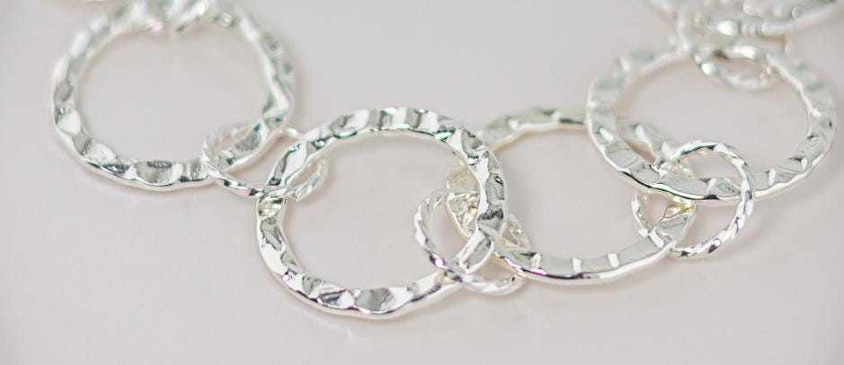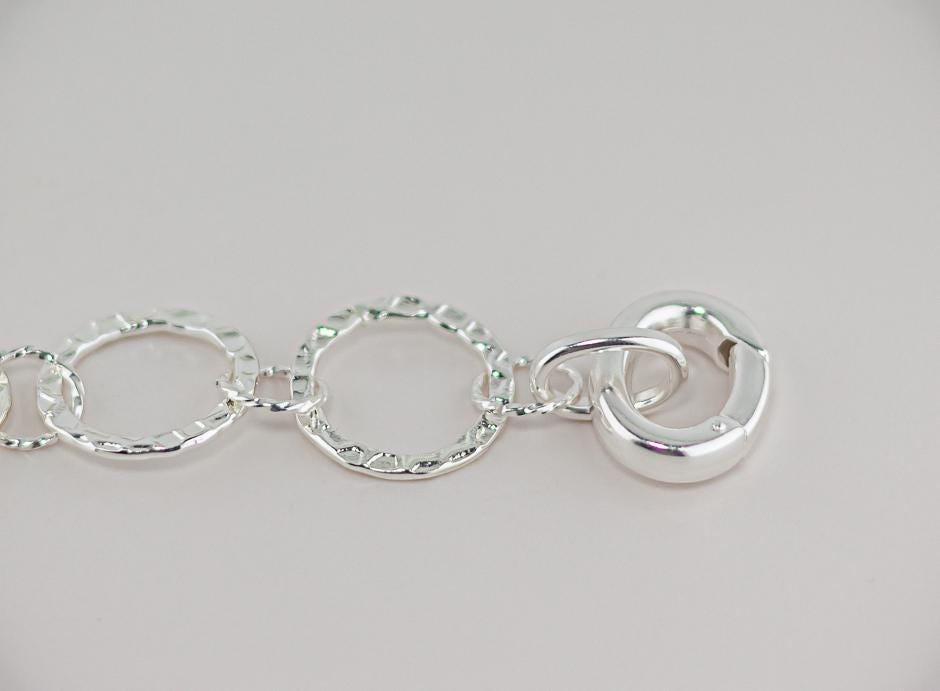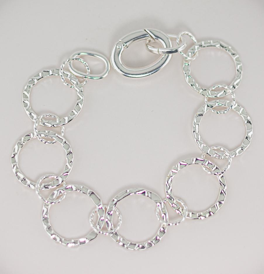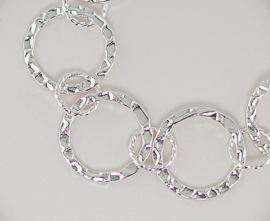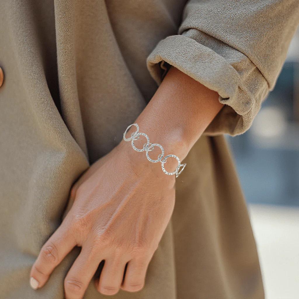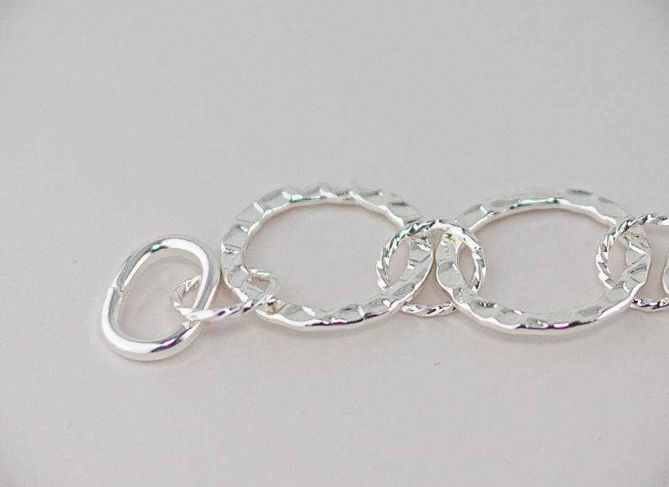 Elevate your style with our Boho Chic Silver Link Bracelet. Crafted from high-quality silver-plated stainless steel, this chic silver statement bracelet features a unique textured pattern and twisted silver jump connectors. Lightweight and eye-catching, this bold sleek modern bracelet adds a bright, shimmery accent to any ensemble. This unique geometric bracelet is a must-have addition to your statement jewelry collection, perfect for those who love modern glam. Wear this cool and bold silver bracelet to the office, date night, happy hour, and beyond—it is a go-to summer jewelry staple. Choose your size now and unleash your inner fashionista with this stunning silver statement bracelet!