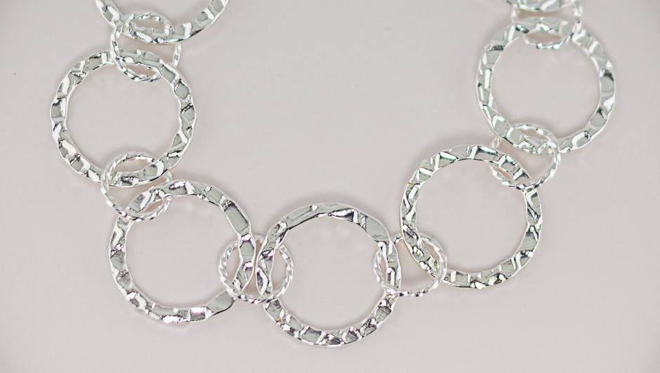 • The sizing of the product is based on the length of the hammered links, with each link measuring