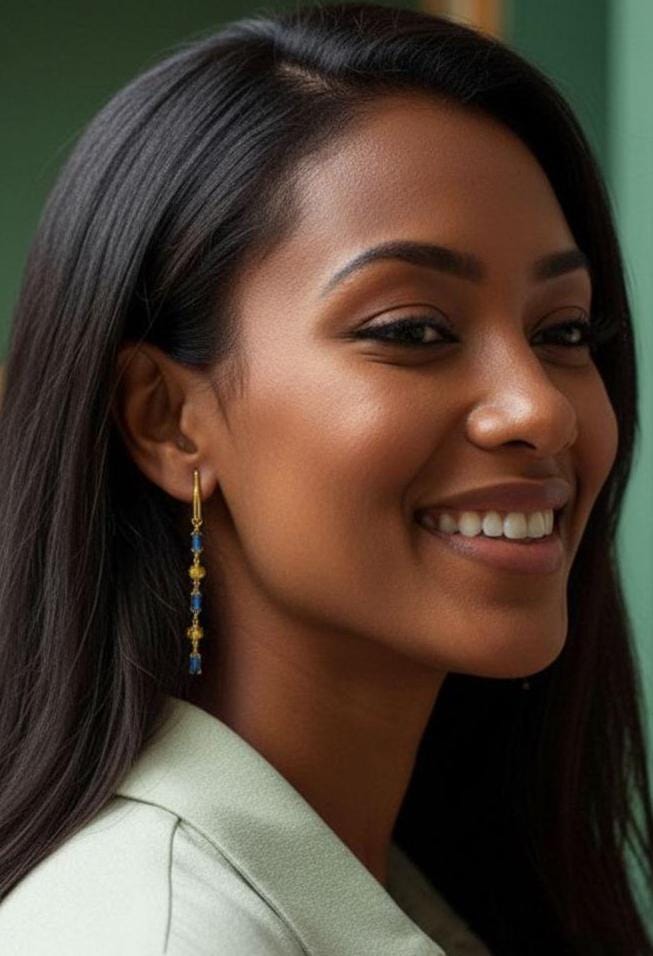 These long dangling gold Earrings create a captivating, eye-catching look with their subtle sparkle. Delicate and feminine, they are perfect for both daily wear and special occasions, adding a subtle yet striking sparkle to any outfit.