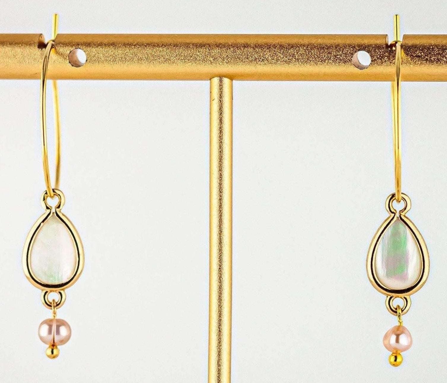 • Genuine mother-of-pearl drops with a smooth finish and an iridescent glow in soft