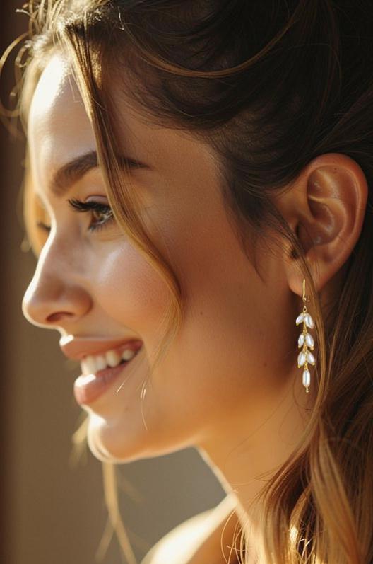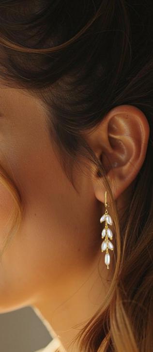 Adorn yourself with these exquisite long delicate pearl earrings, featuring beautiful white rice pearls enhanced with subtle gold accents. These elegant gold dangle earrings are the perfect pearl accessory for any occasion, adding a touch of sophistication and charm to your ensemble. Make a statement with these lightweight, timeless and versatile white drop earrings that effortlessly elevate any look. These white earrings mixing classic girly subtle sparkle and timeless feminine charm with minimal modern chic drop earring. Perfect for both everyday wear and special events, these earrings are sure to become a beloved staple in your jewelry collection.