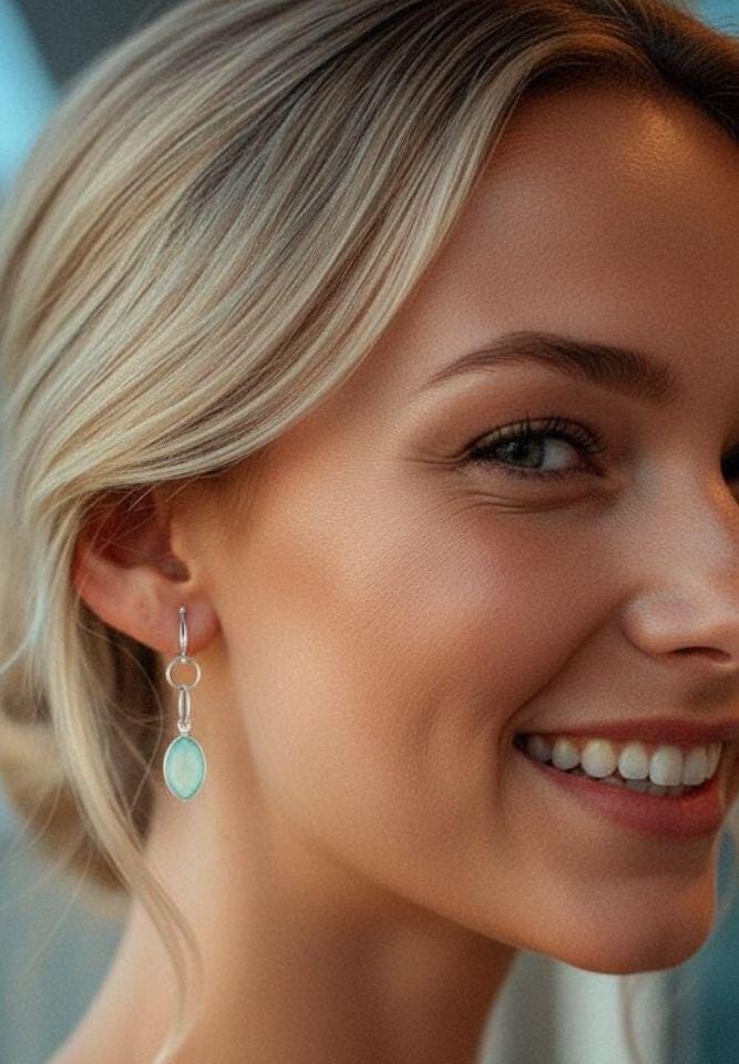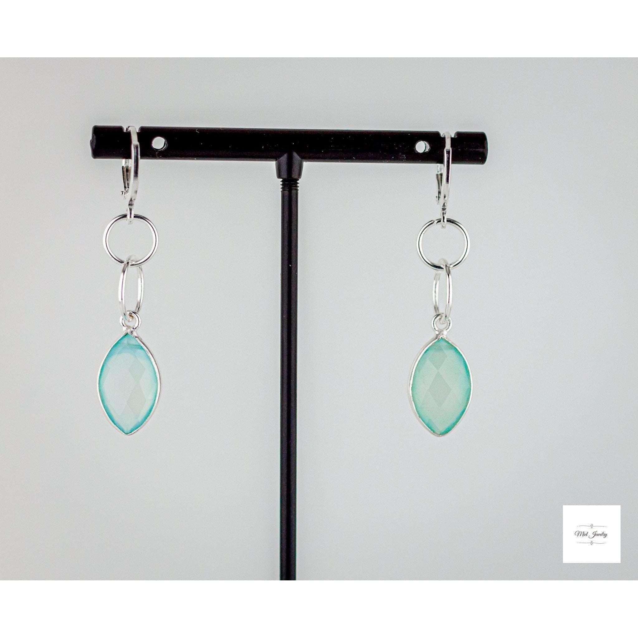 Experience the enchanting ocean inspired beauty of these Elegant Sea Blue Chalcedony Drop Earrings. Dainty and delicate these pretty light blue earrings are a must-have for any chalcedony jewelry collection. These stunning silver drop earrings feature dazzling pale aquamarine gemstones set in sterling silver, adding a touch of nature inspired boho chic style that effortlessly transitions from day to night. Lightweight and comfortable with understated feminine style they are a captivating pair of blue and silver earrings that will take you from day to night. These dainty and delicate crystal earrings exude enduring charm and effortless beauty, sure to become a favorite in your blue jewelry collection.