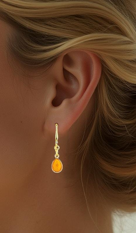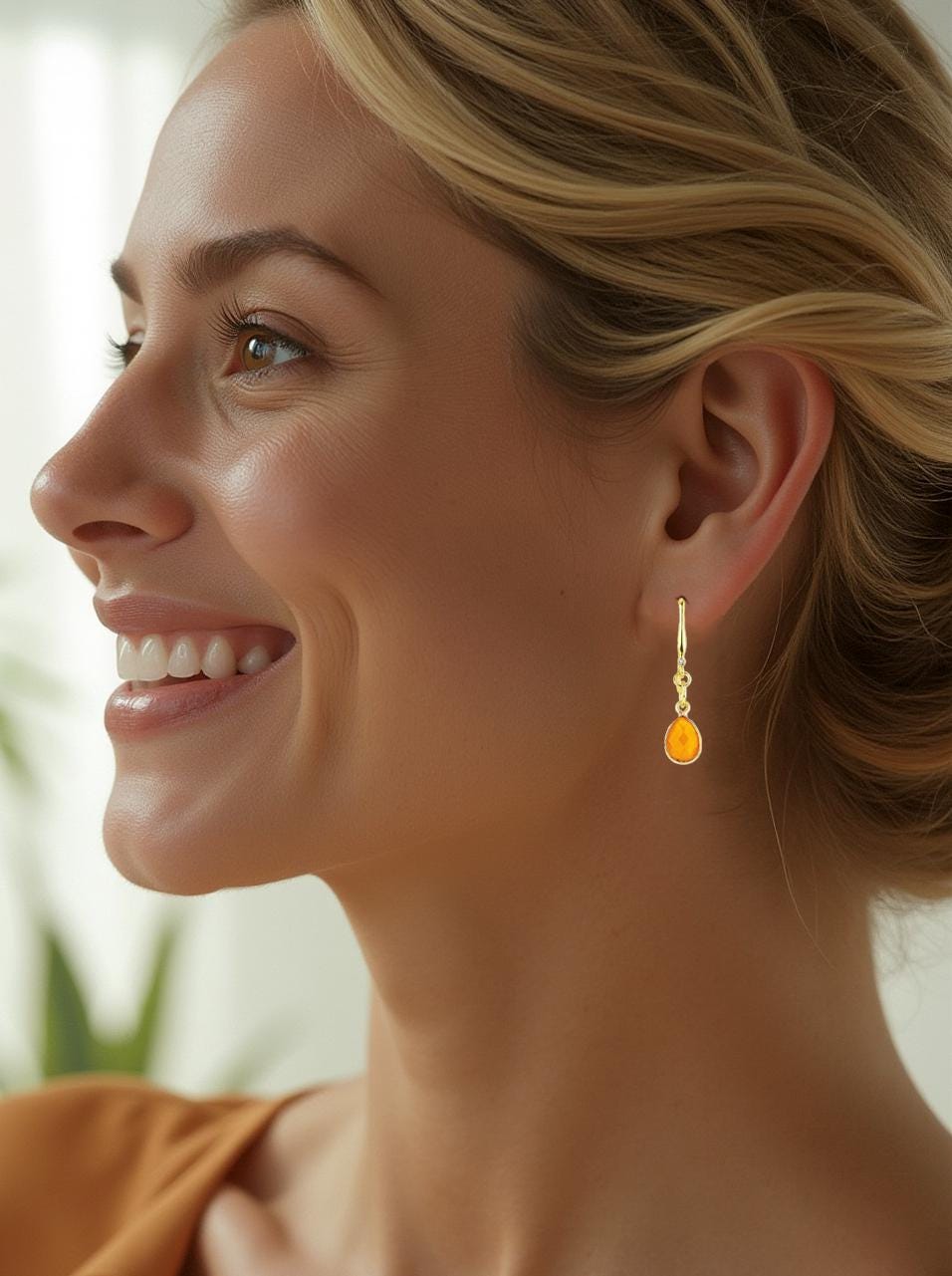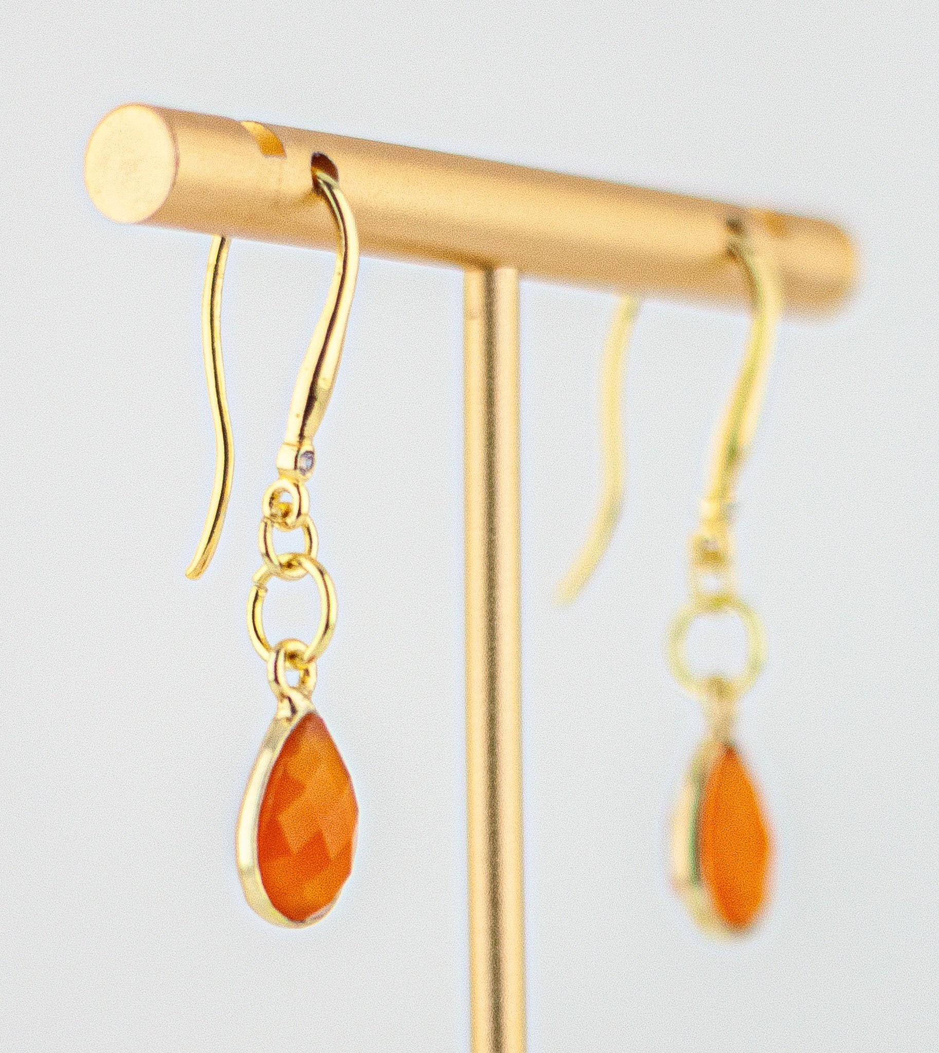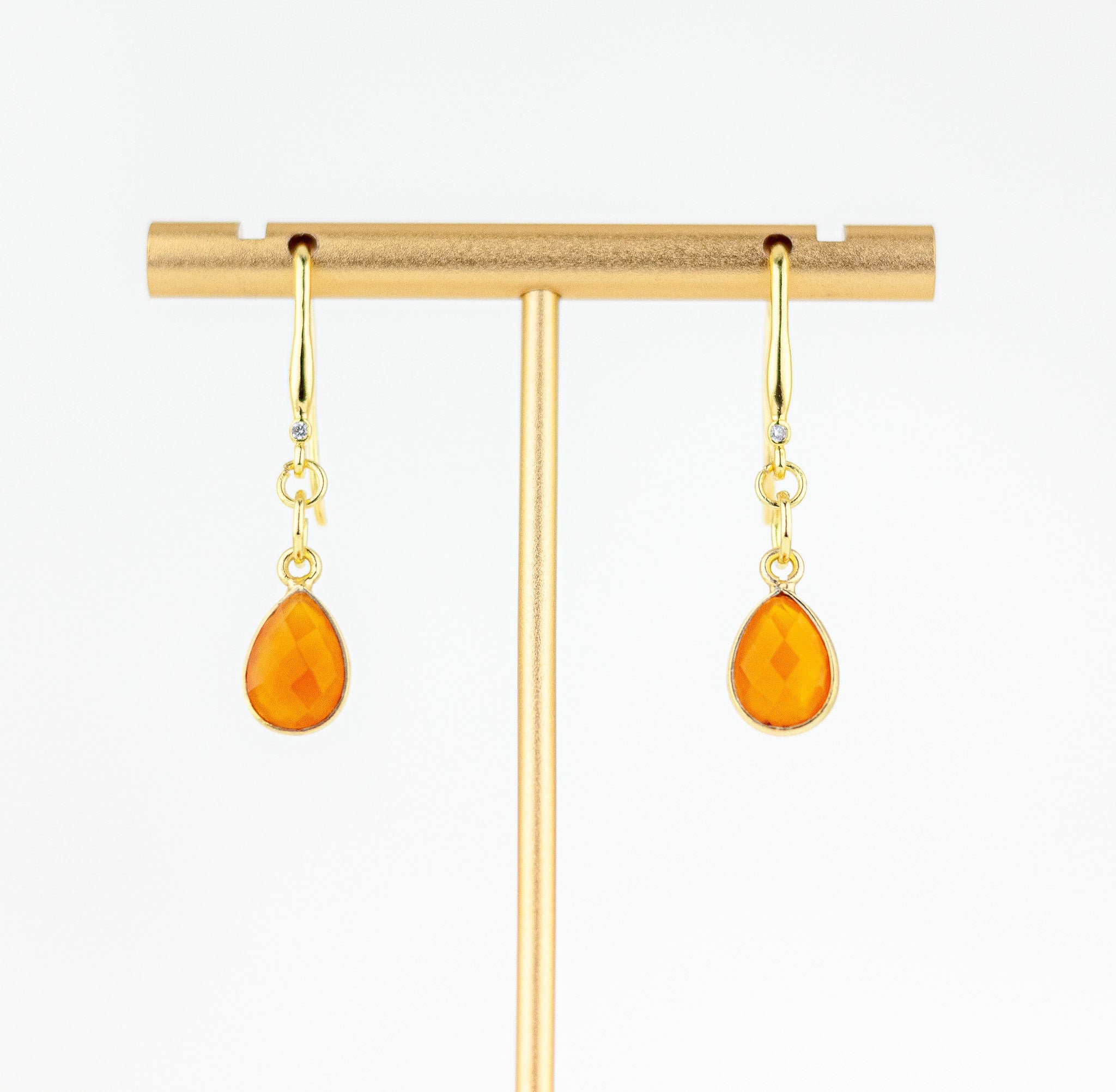 These pretty carnelian earrings is perfect for any occasion, both casual and fancy outfits combining the beauty of orange gems with warm gold accents and the shimmer feminine elegance with a sleek refined modern twist they will be a go-to favorite in your carnelian jewelry collection.