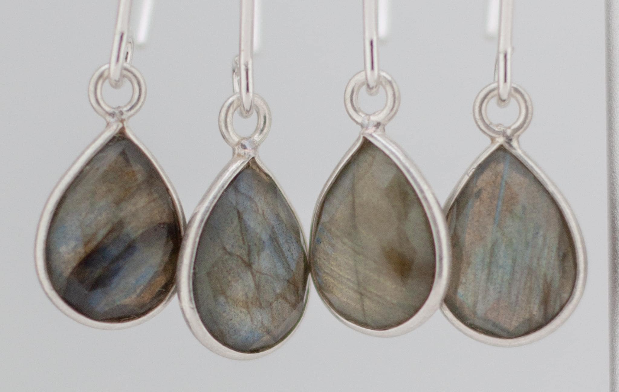 • Genuine shimmery labradorite gemstones with subtle iridescent flashes of color.