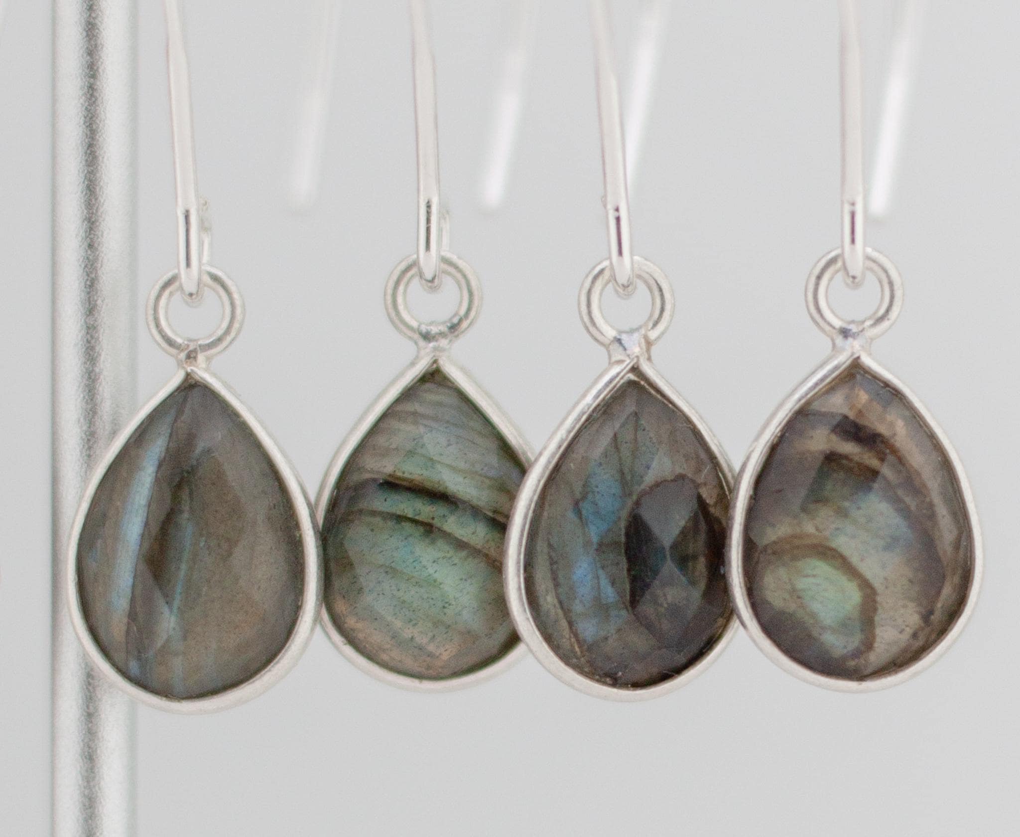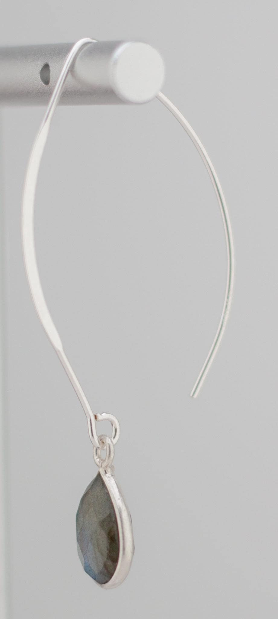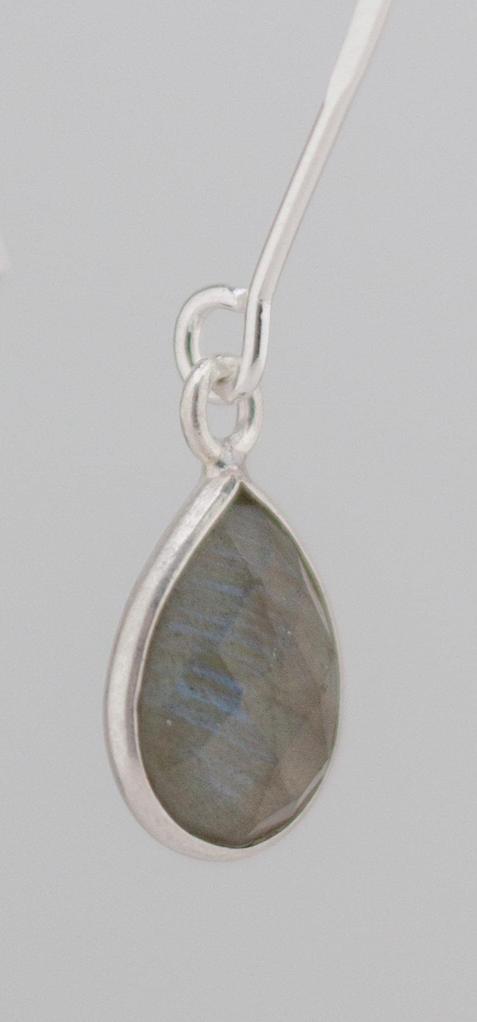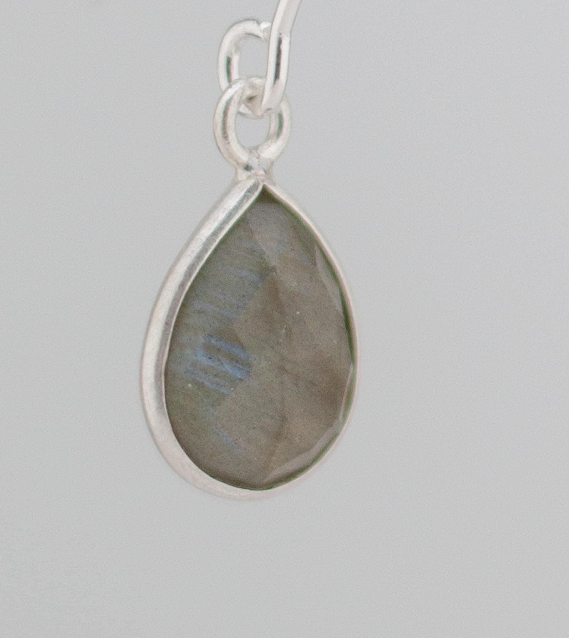 Discover the beauty of labradorite with these minimalist fishhook style silver drop earrings. Made with shimmering labradorite and sterling silver bezels, they will elevate your everyday look and add a touch of simple elegance to any outfit. With sparkling teardrop shaped grey gemstones and dainty silver ear wires, these exquisite long earrings are a the perfect addition to you boho chic labradorite jewelry collection that will never go out of style.