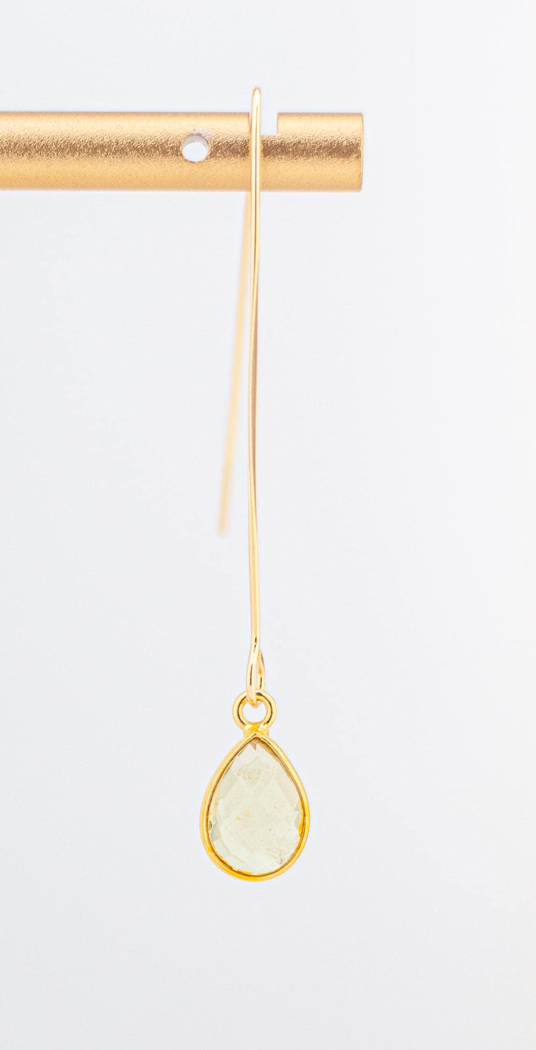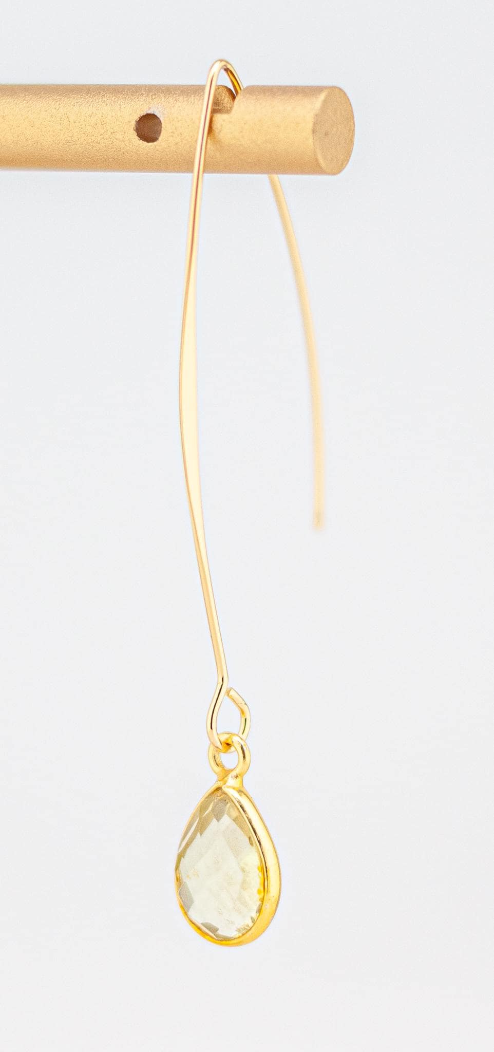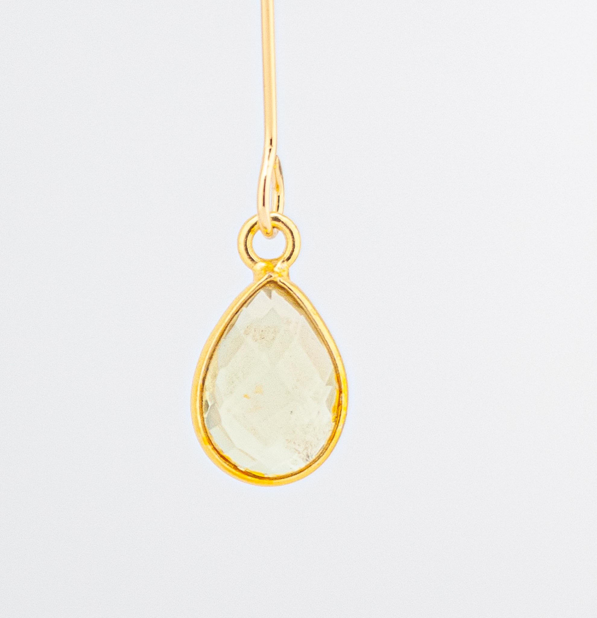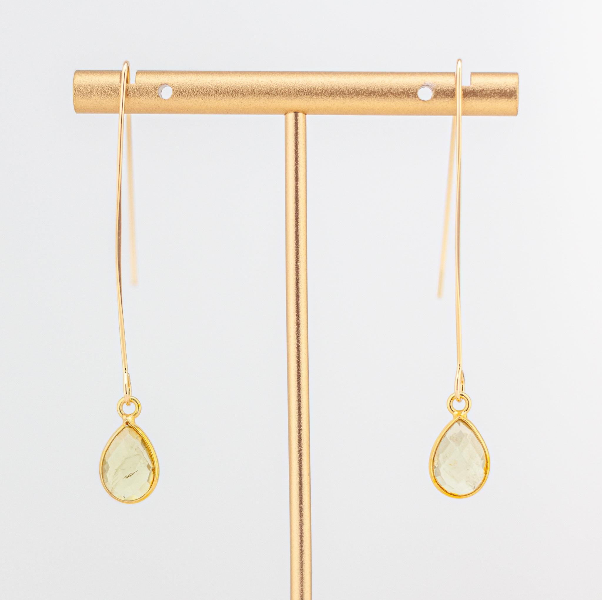 Experience pure elegance with our stunning lemon yellow quartz and gold fishhook earrings! These earrings feature dazzling faceted lemon quartz bezels and sophisticated gold fishhook ear wires, adding a touch of refinement to any outfit. Whether you're treating yourself or giving them as a gift, these earrings are sure to become a timeless favorite. With beautiful, shimmery, light yellow lemon quartz and vermeil bezels, they catch the light and sparkle like nothing else. Equipped with delicate gold-plated fishhook ear wires, these earrings are 2.25 inches long and exude timeless beauty.