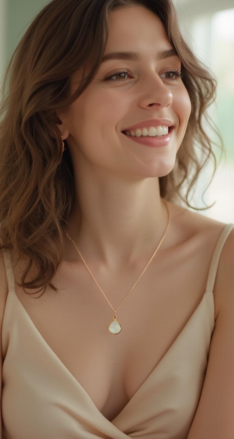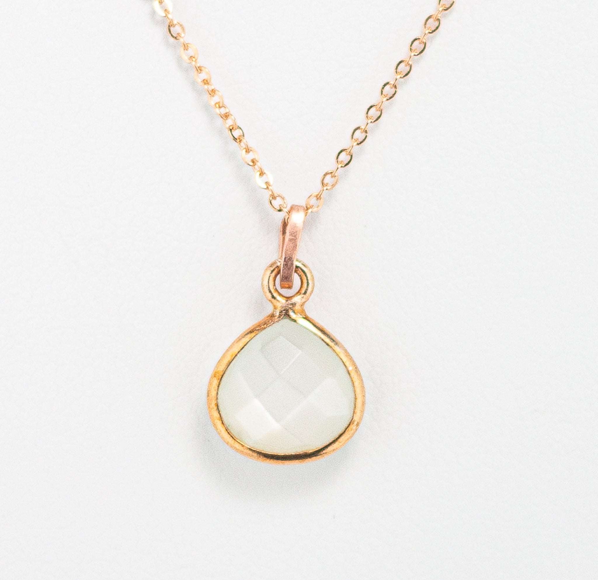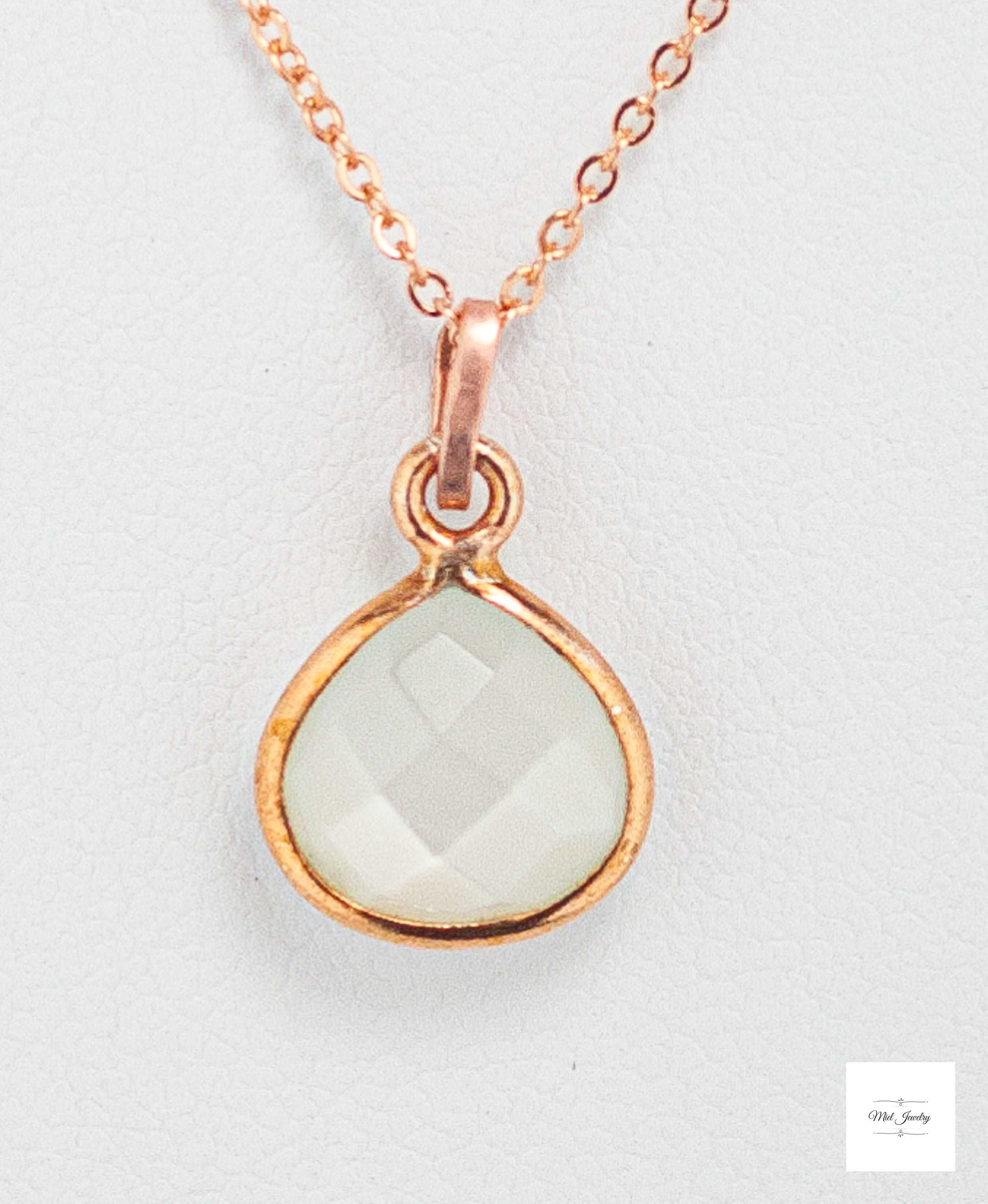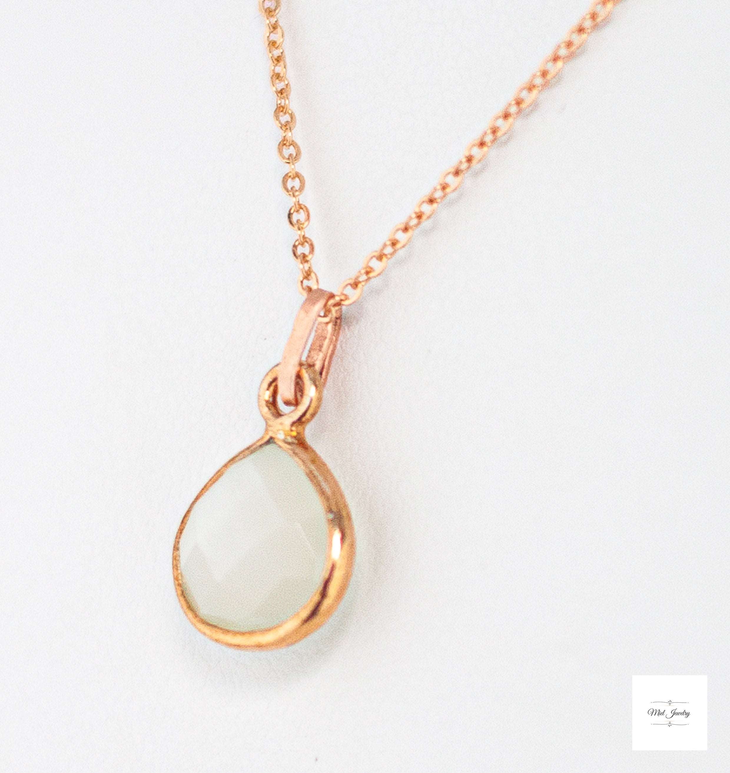 Indulge in the enchanting delicate beauty of this Dainty Moonstone Charm Necklace. Featuring a mesmerizing pear-shaped white moonstone that hangs gracefully from a dainty rose gold chain, this rose gold necklace is adorned with a hand-textured rose gold bail for a touch of unique carefree elegance. Perfect for layering, this sweet and charming pink necklace adds a subtle yet captivating shimmer to any outfit. It's a timeless addition to your rose gold jewelry collection or a sentimental gift for a loved one. This pretty, minimalist white and pink gemstone necklace will be treasured for years to come. Elevate your boho chic style with this stunning moonstone necklace and embrace its enchanting mystical beauty. Perfect for bridesmaids, wedding guests, birthday and a meaningful gift. Don't miss out on this must-have pink and white accessory that combines elegance and charm, sure to be treasured addition to your moonstone jewelry collection for years to come!