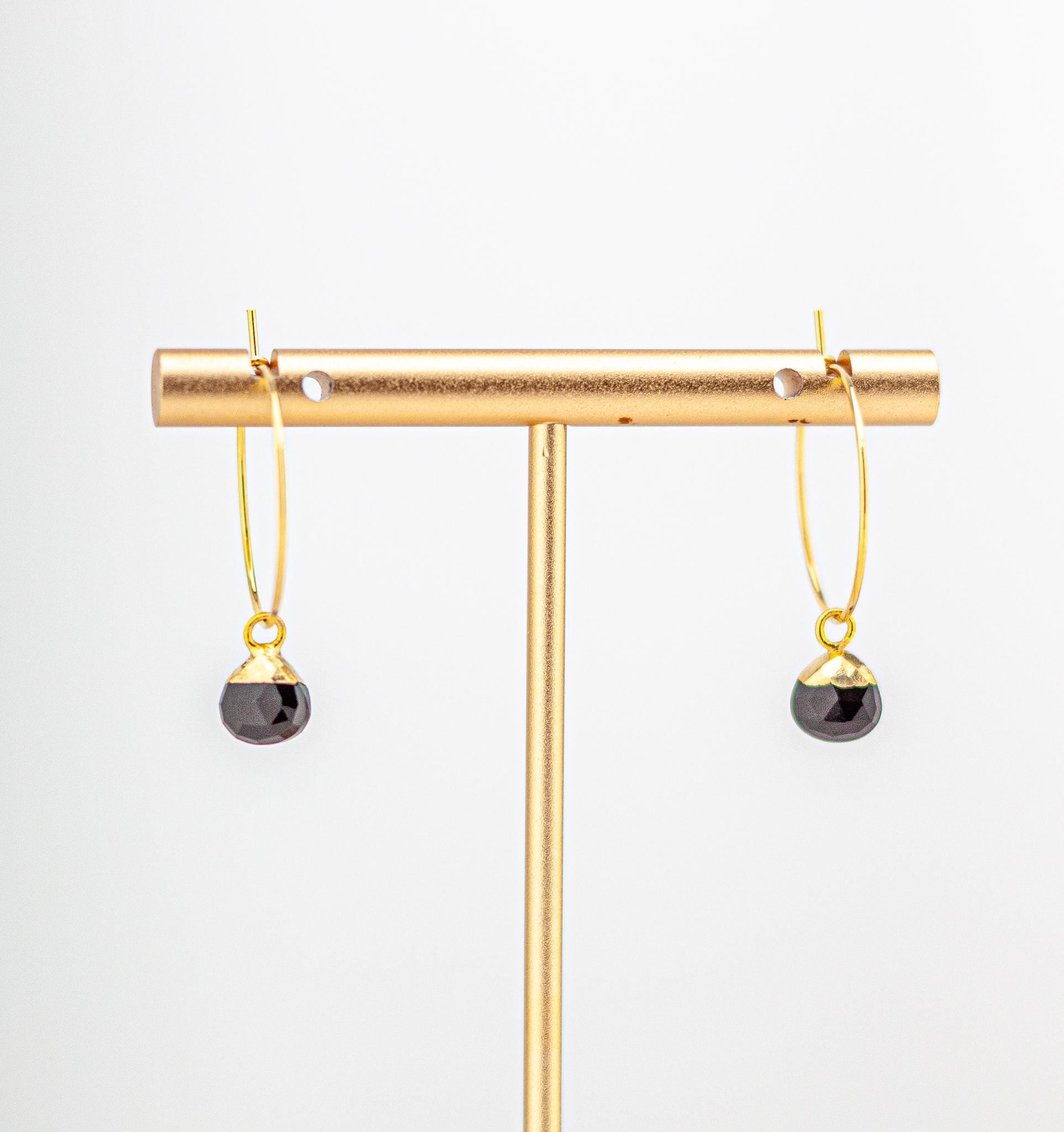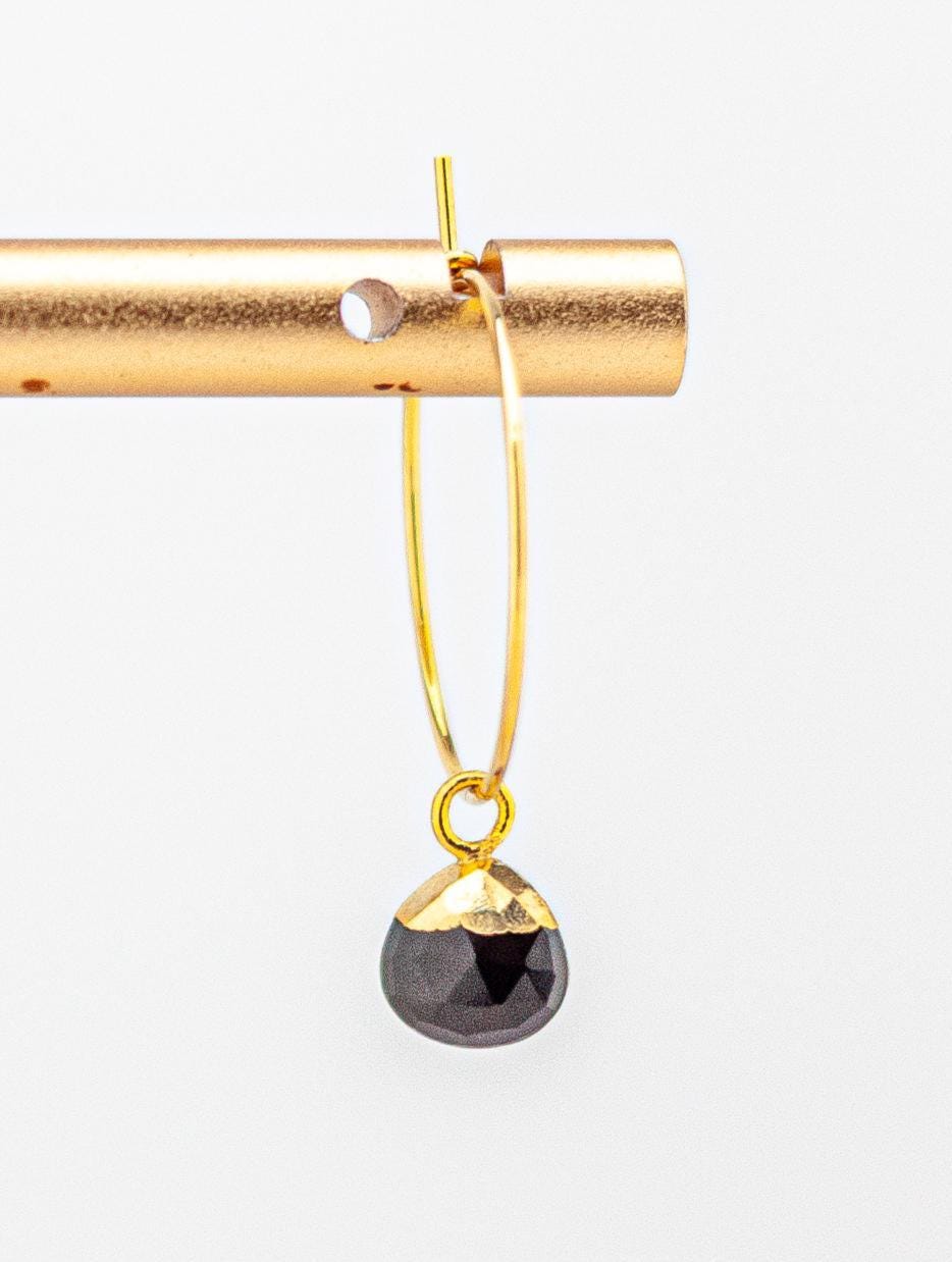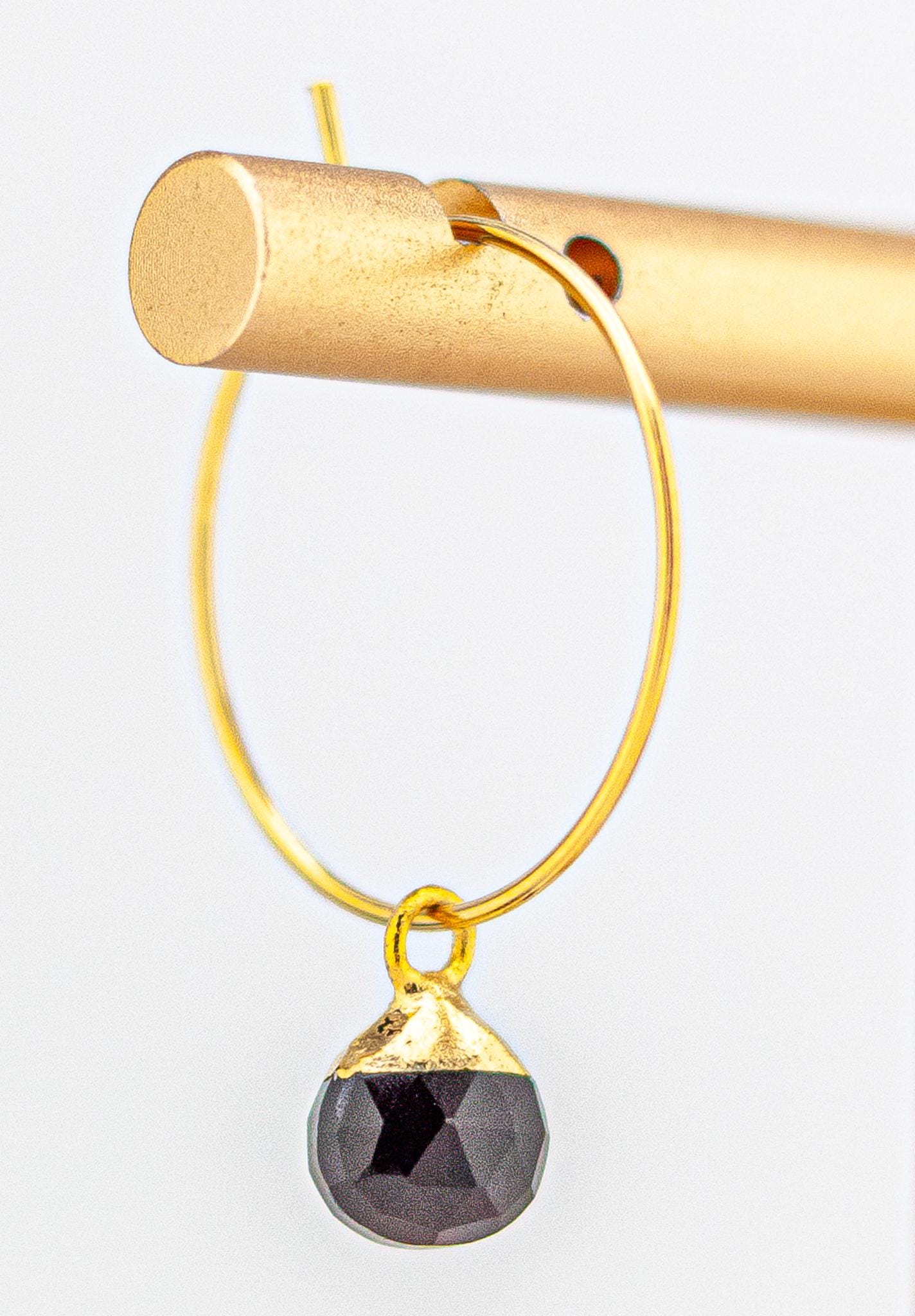 Add a touch of elegance and boho chic style to your look with these Dainty Black Onyx Hoop Earrings featuring gold leaf accents. These small gold stainless steel hoop earrings are adorned with sleek black onyx gemstones, creating a shimmering contrast that is perfect for any occasion. The gold leaf accent adds a luxurious touch, making these stunning onyx earrings a versatile modern, minimalist black accessory that elevates casual and formal outfits. Crafted with high-quality gold stainless steel and black onyx stones, these delicate hoops ensure durability and comfort, making them ideal for everyday wear.