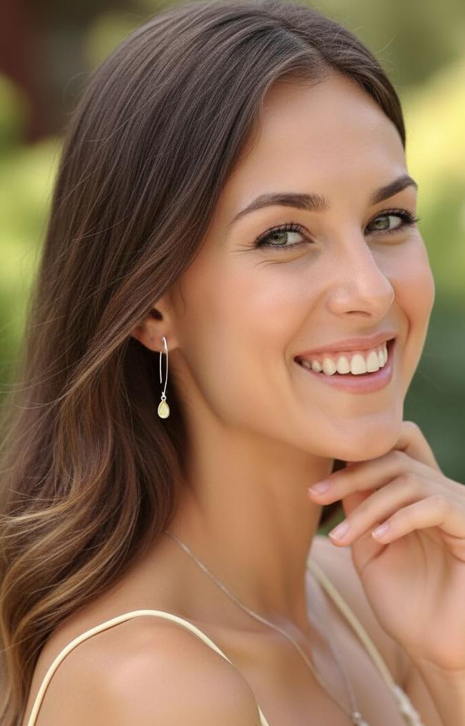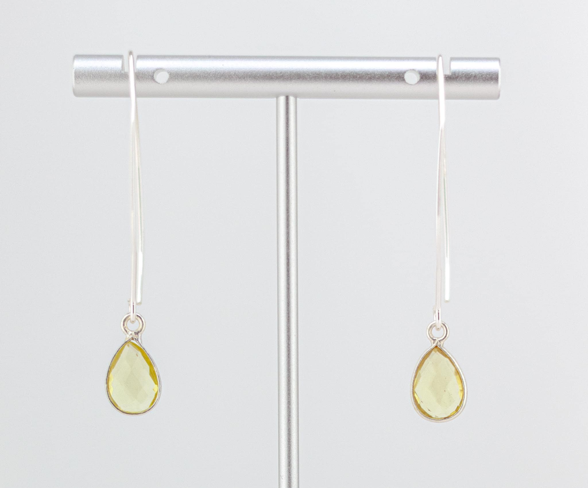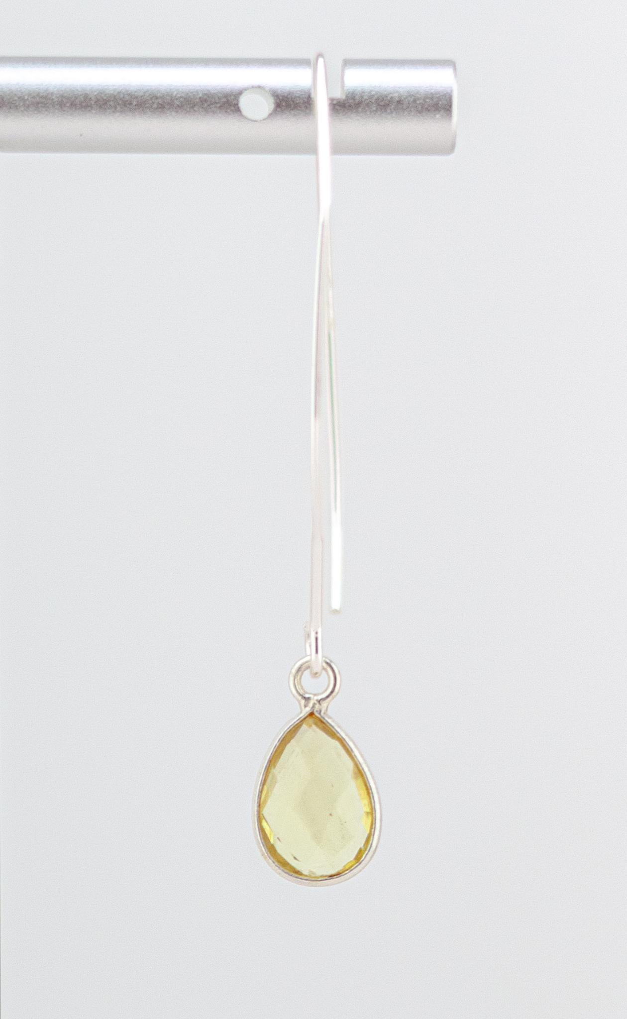 Add a touch of dainty girly charm to your look with these stunning Lemon Quartz Earrings. These long minimalist fishhook style silver earrings are the perfect accessory for everyday wear. Featuring shimmering lemon quartz gemstones these yellow crystal drop earrings radiate a sunny sparkle. These long yellow earrings are ideal for the office, work, bridesmaids, wedding guests, date nights, or everyday accessories. A lightweight and versatile crystal accessory that seamlessly transitions from casual to formal settings.