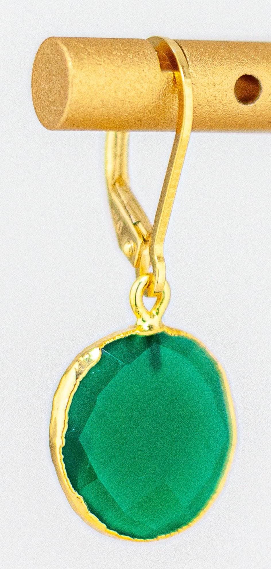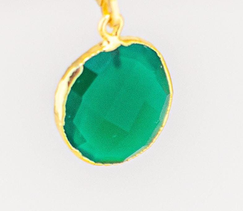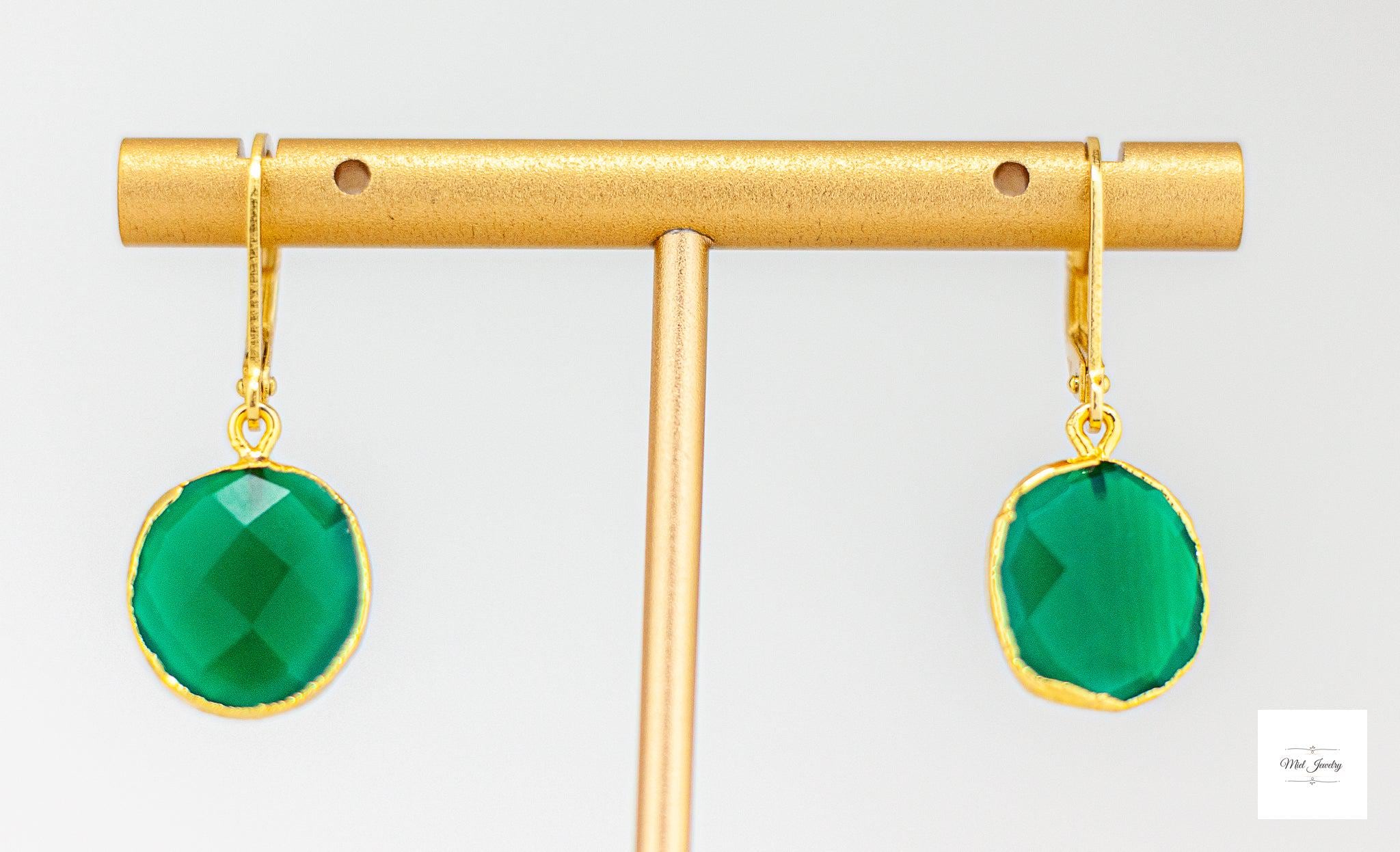 Add a touch of timeless elegance to your look with these Dainty Green Onyx Drop Earrings, featuring shimmering emerald green onyx gemstones and delicate luxurious gold leaf details. Designed for simplicity and sophistication, these small green earrings provide a subtle yet striking pop of color, perfect for both everyday wear and special occasions.
