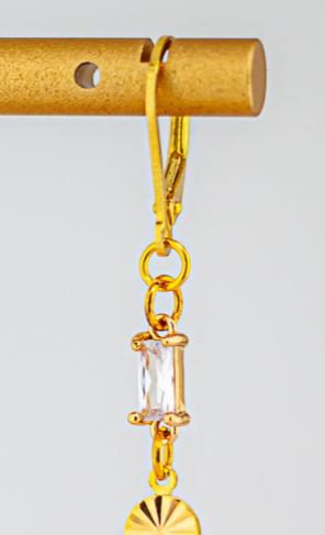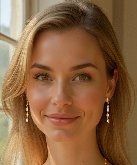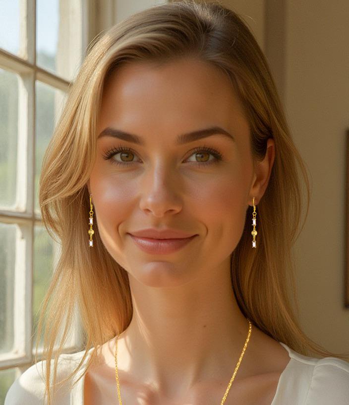 • Gold-plated 925 sterling silver lever-back ear wires.