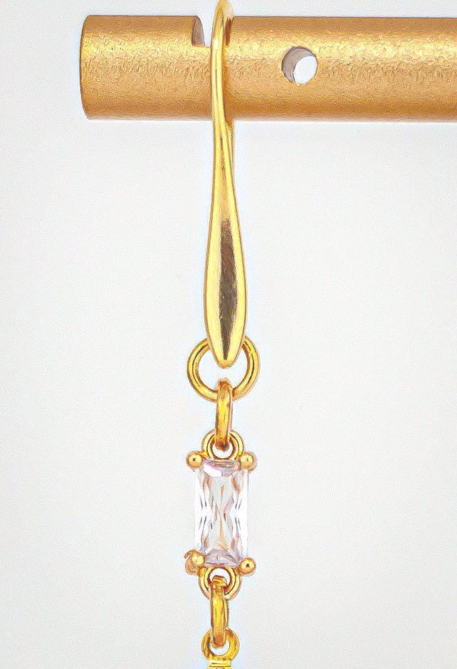 Embrace timeless style with these Elegant Vintage-Inspired Long Gold dangle Earrings. These pretty crystal statement earrings features a retro Art Deco-inspired design with rectangular shaped clear glass links and intricate geometric gold connectors. Ideal for bridesmaids, weddings, date nights, or everyday accessories. A lighweight and versatile glass accessory that seamlessly transitions from casual to formal settings. These long glamorous earrings pair effortlessly with any outfit, mixing classic girly subtle sparkle and timeless feminine charm with minimal modern chic drop earring.