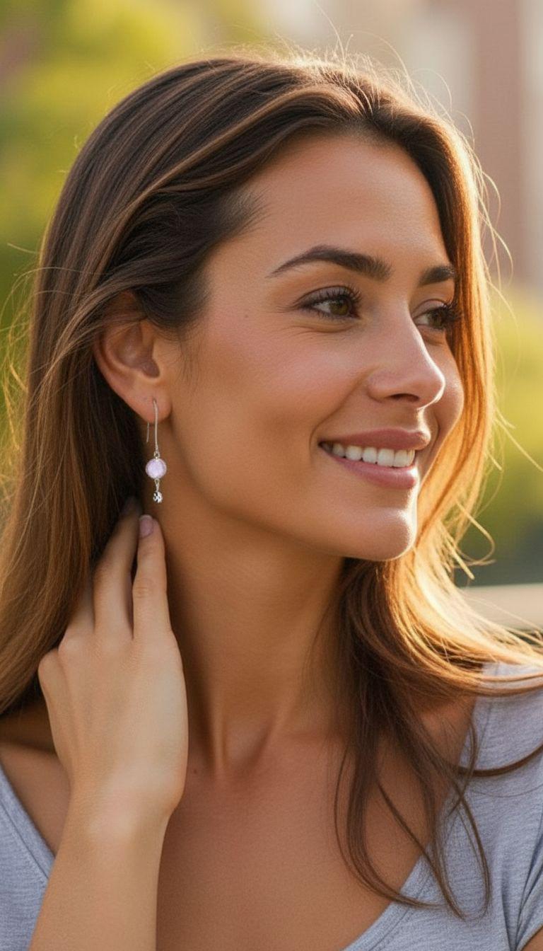 Add timeless romance to your style with our lovely pale lavender purple Amethyst drop earrings. They add retro vintage style and timeless feminine elegance to any look! The perfect silver dangle earrings for everyday wear, they have captivating simplicity these beautiful pale purple earrings showcase sparkly raw amethyst stones that sway gracefully on long silver ear wires. Transform your everyday casual outfits with these stunning dainty and delicate silver earrings. Suitable for everyday wear and tradition effortlessly from day to night to complement a date night outfit or evening dress.