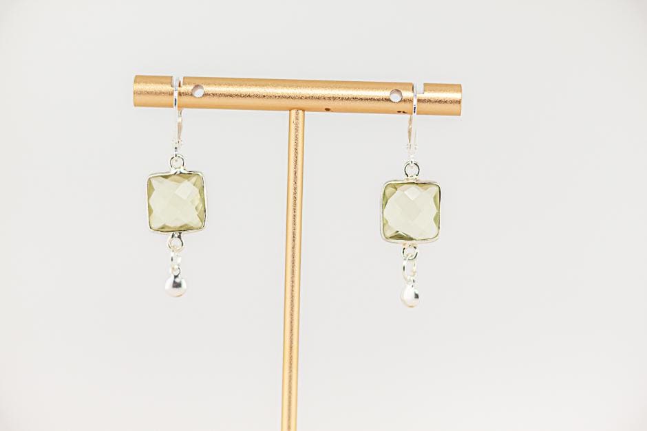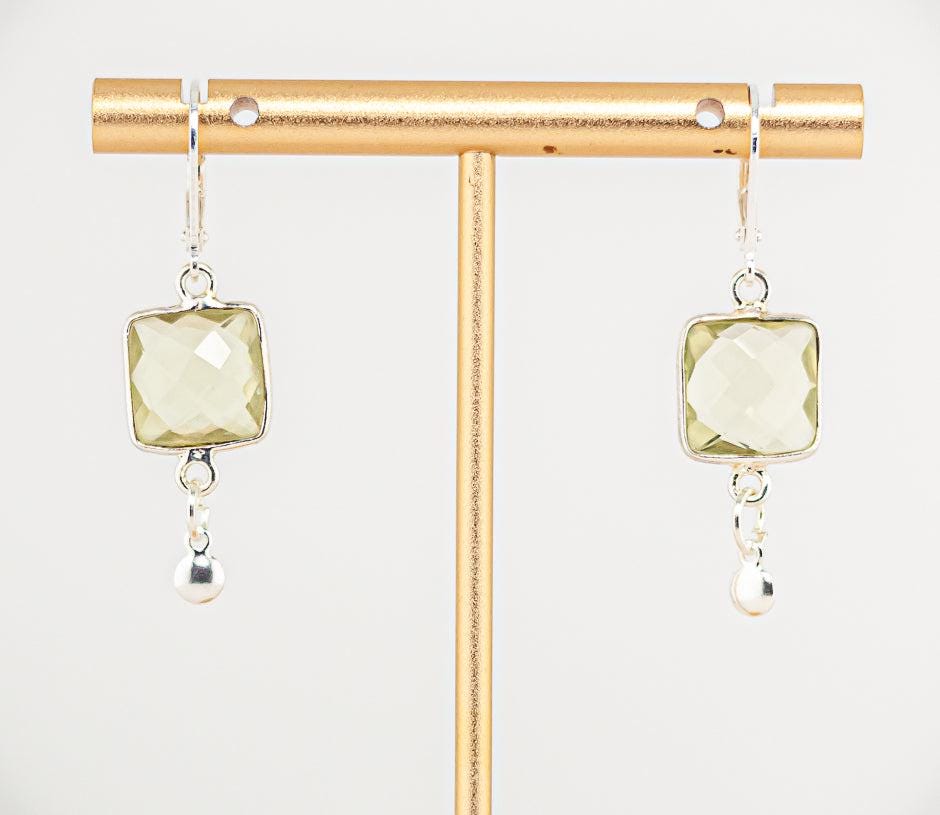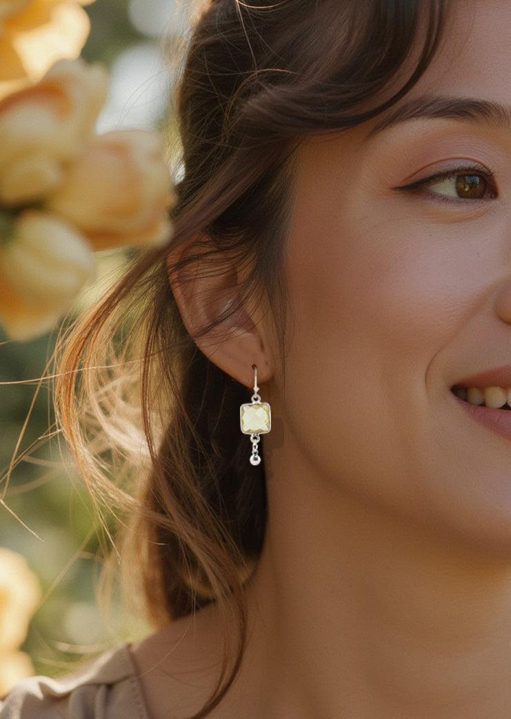 Add a burst of sunshine to your style with these Lemon Quartz Earrings, featuring sunny yellow quartz stones in a chic square shape.