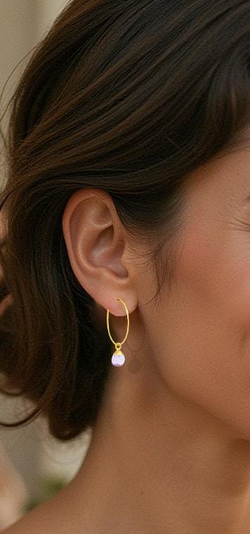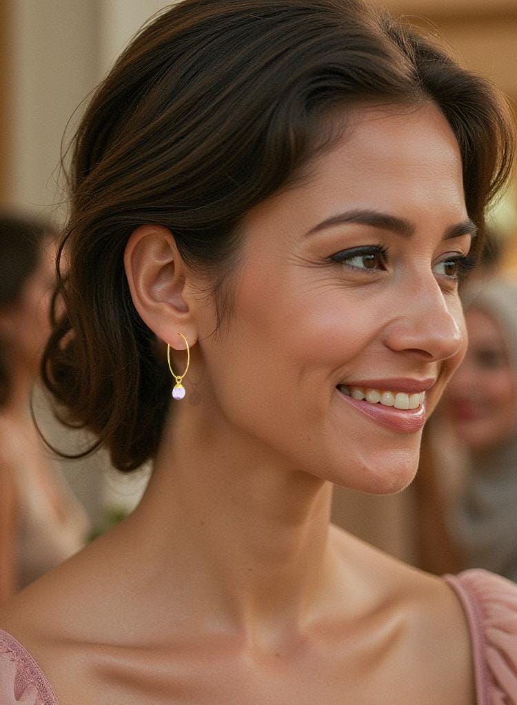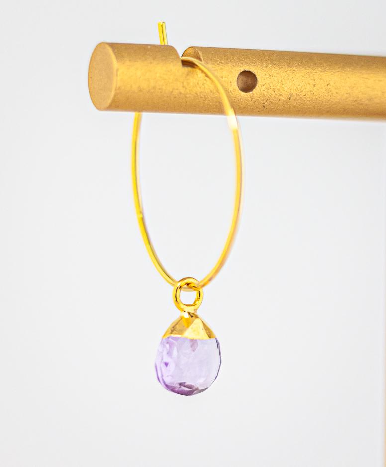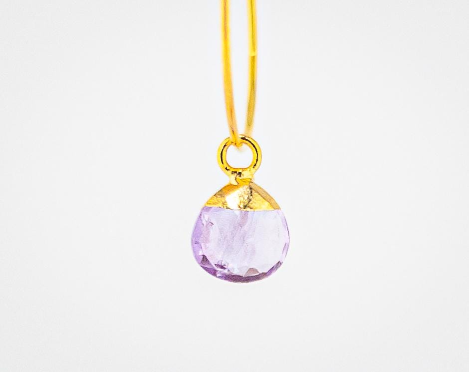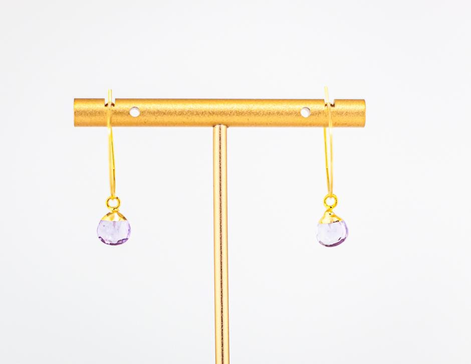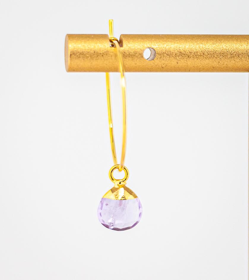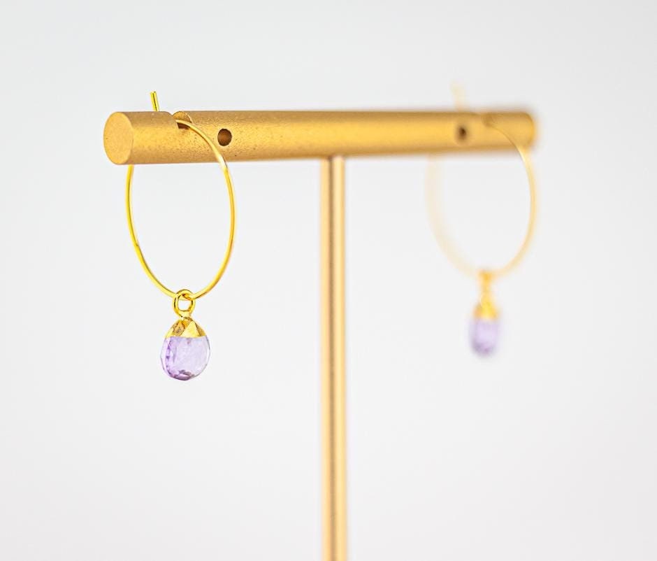 These delicate small gold hoops are perfect for everyday wear or special occasions. These versatile lightweight amethyst earrings offer a simple yet sophisticated look. Their versatile design makes these gold hoop earrings are an ideal choice for adding a subtle lilac color and everyday elegance to your amethyst jewelry collection. Treat yourself or surprise someone special with these graceful gold amethyst hoops.