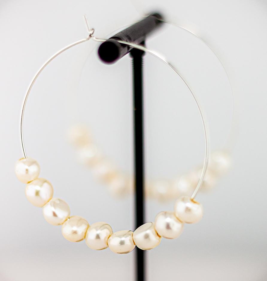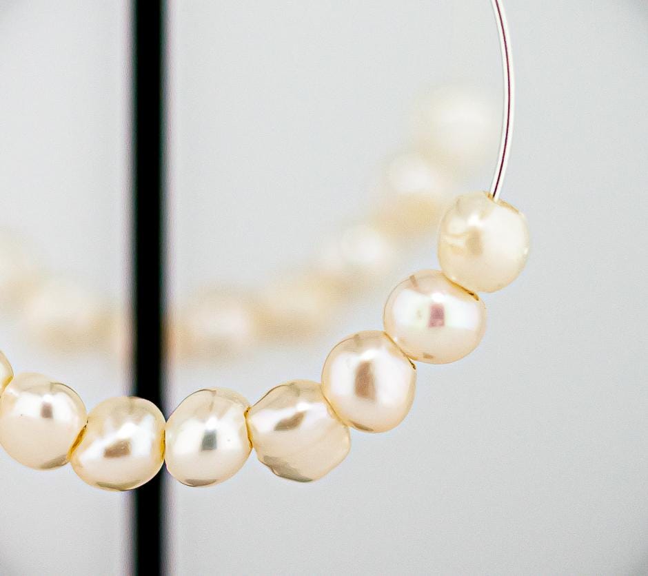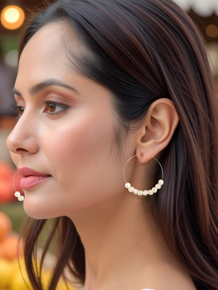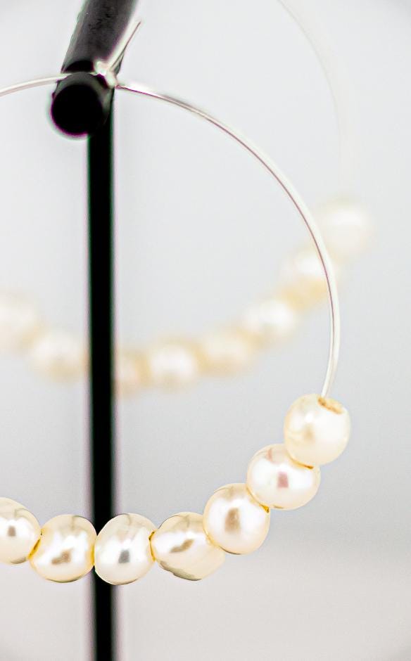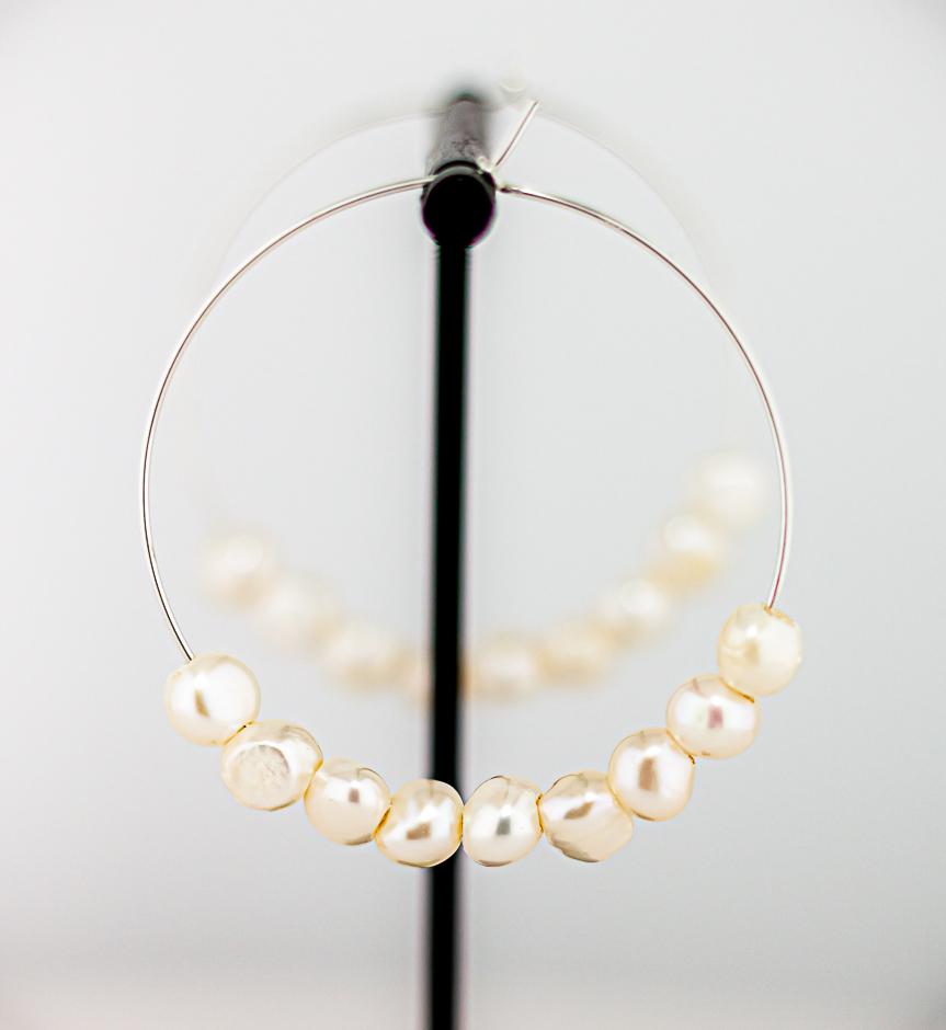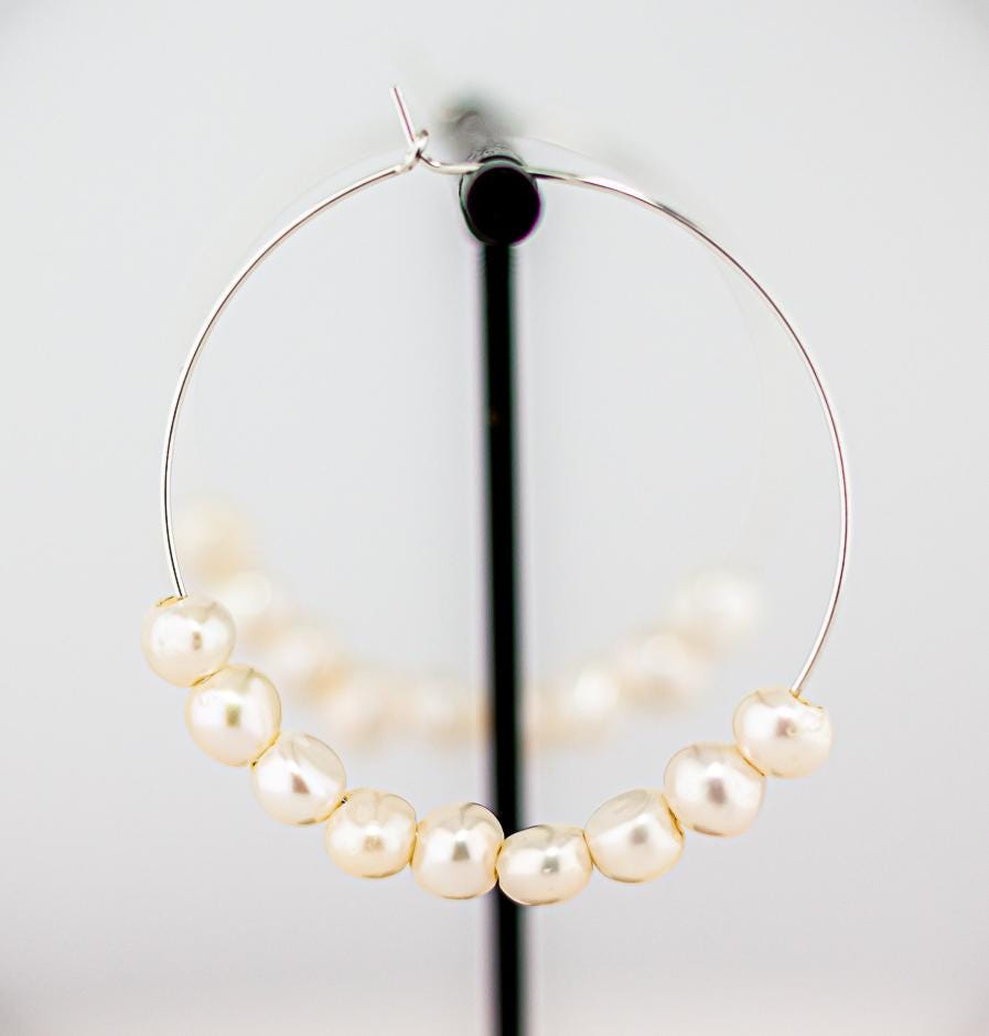 These timeless and shimmering pearl hoops are perfect for date night, bridal jewelry or as thoughtful bridesmaid gifts. Crafted from high-quality sterling silver hoops and adorned with delicate, shimmering freshwater pearls, they are lightweight and comfortable for all-day wear. Their versatile design adds a touch of feminine charm with a hint of boho flair, making them a must-have for anyone who loves elegant, timeless jewelry. Whether as a unique gift for her or a cherished addition to your pearl jewelry collection, these earrings epitomize effortless elegance and sophistication.