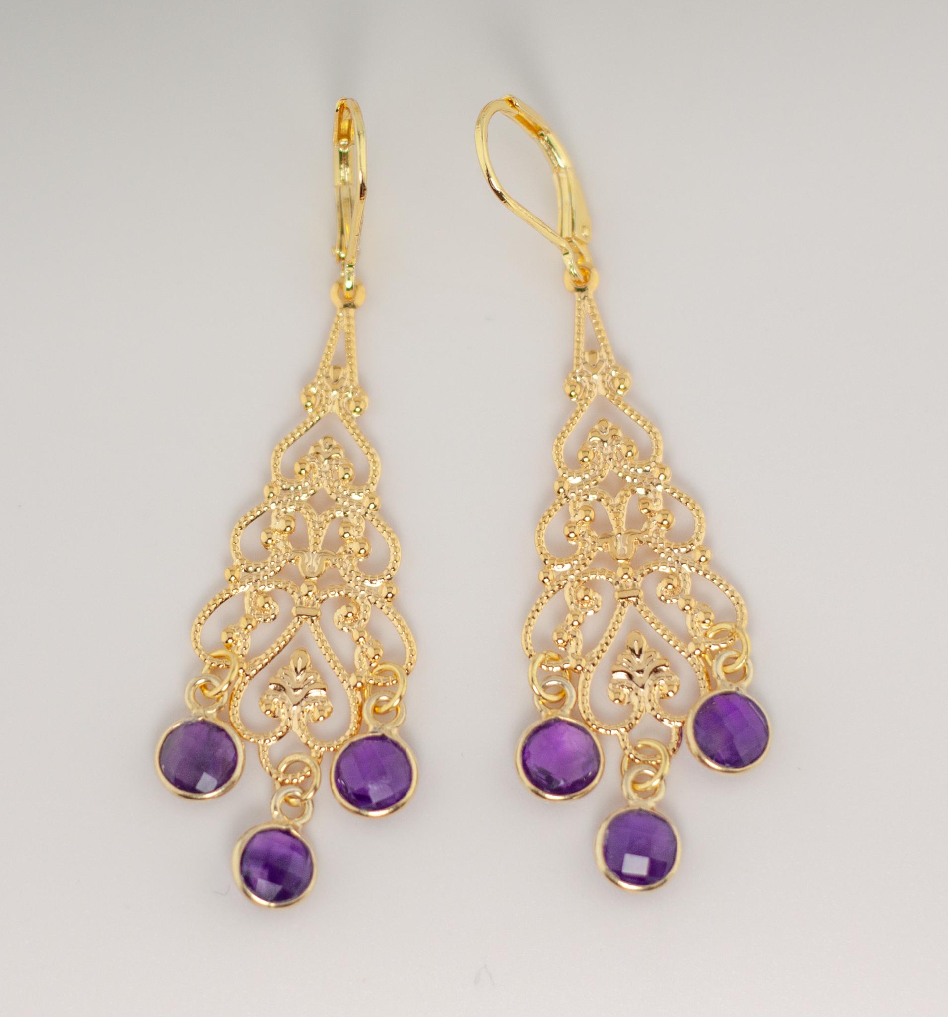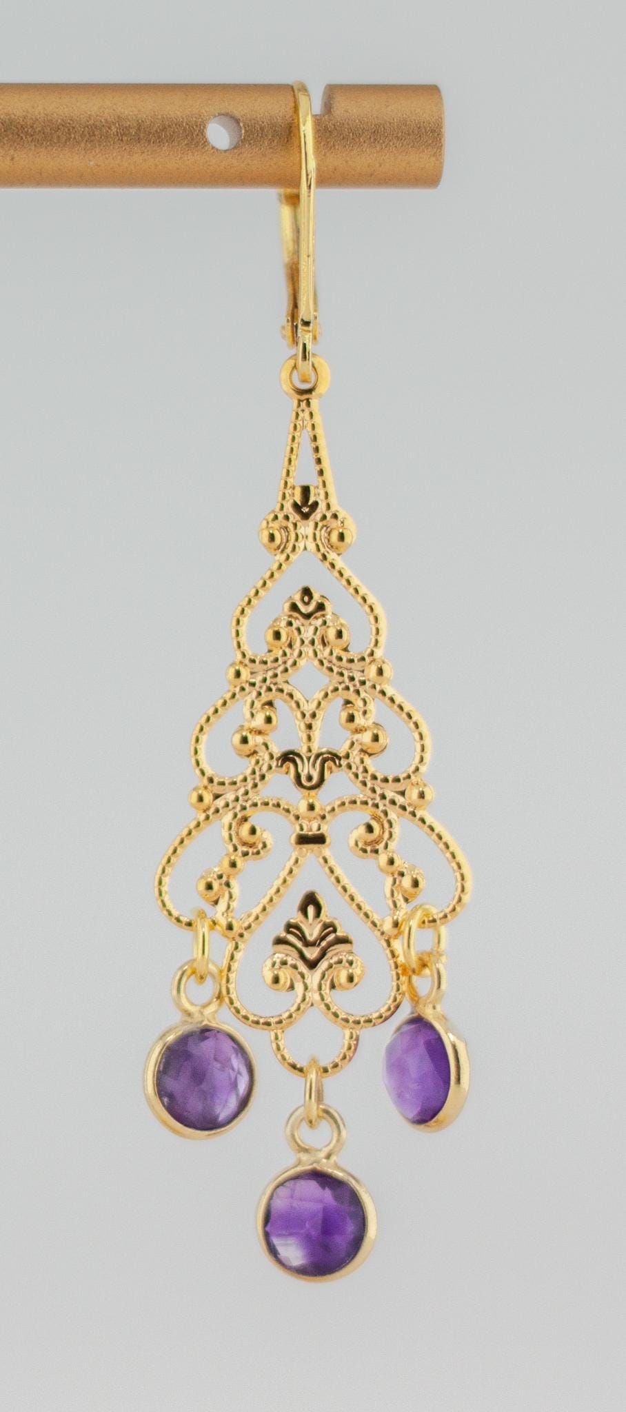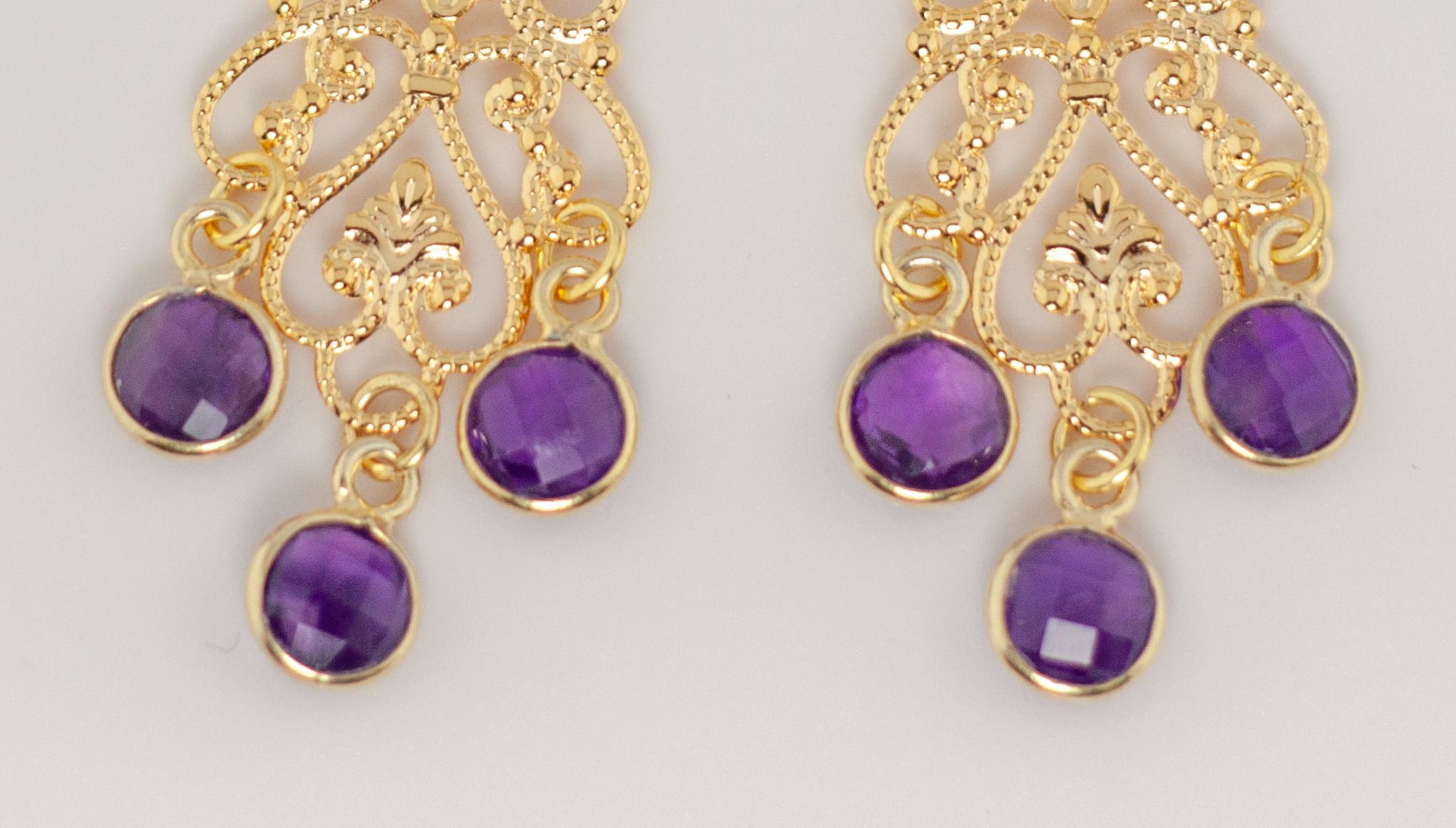 The filigree portion of these earrings is beautiful. Very eye catching. The amethyst drops are a beautiful purple color.