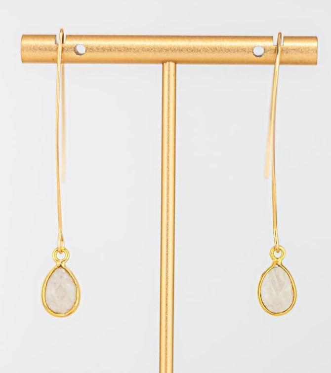 Add these long white gemstone earrings to your moonstone jewelry collection for a look that embodies bohemian beauty and effortless sophistication. Whether you're dressing up or down, these delicate and dainty gold fishhook earrings will be the perfect choice.