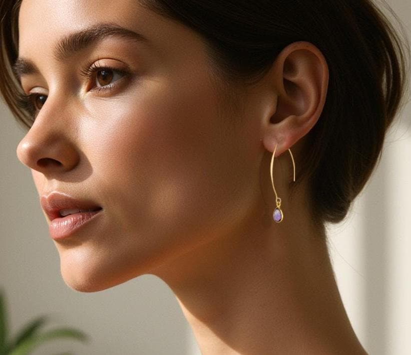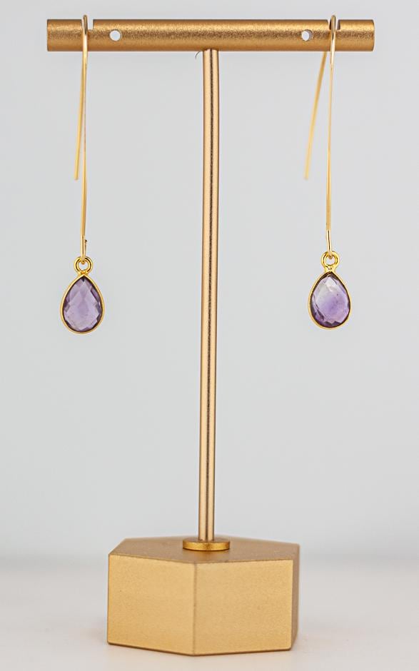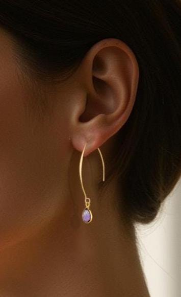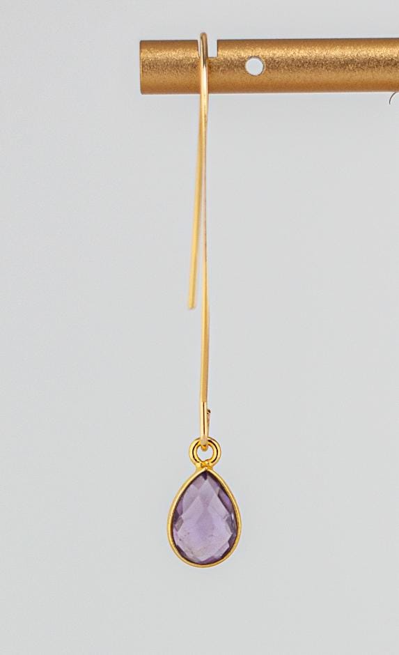 Add a touch of feminine elegance and simplicity to your amethyst jewelry collection with these delicate Gold Amethyst Earrings. Designed for a minimalist yet sophisticated look, these long gold earrings feature light lilac amethyst gemstones in sparkling pale lavender hues. The lightweight modern gold fishhook style ensures lightweight comfortable wear, making them perfect for everyday elegance or a refined statement for special occasions. Crafted with a dainty and delicate design, these minimalist amethyst earrings offer effortless versatility, pairing beautifully with casual and formal outfits alike. Whether you're looking for a timeless gift or a unique addition to your purple jewelry collection, these dainty and sparkling purple gemstone earrings are a must-have.
