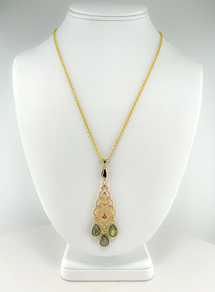 Whether you are searching for a statement piece to complete your unique feminine style or a versatile filigree accessory to elevate your wardrobe, this Gold Labradorite Necklace is the perfect choice. Embrace this chandelier-style necklace's elegance and bold character, and let your inner beauty shine.