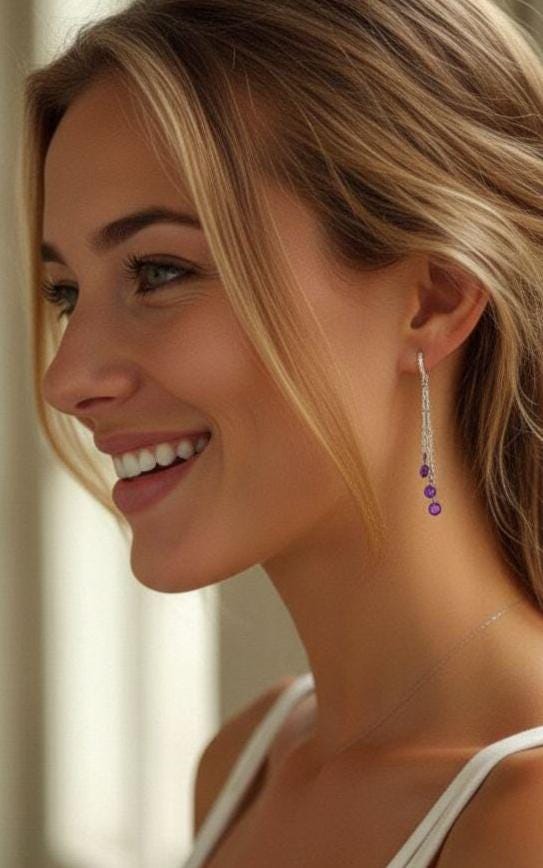 Whether you're dressing up for date night or adding a pop of color to a casual outfit, these dainty crystal drop earrings are the perfect blend of sweet, sophisticated, and unique. Their lightweight design ensures comfort all day long, while the sparkly amethyst stones bring a hint of mystical beauty and timeless elegance to your amethyst jewelry collection.