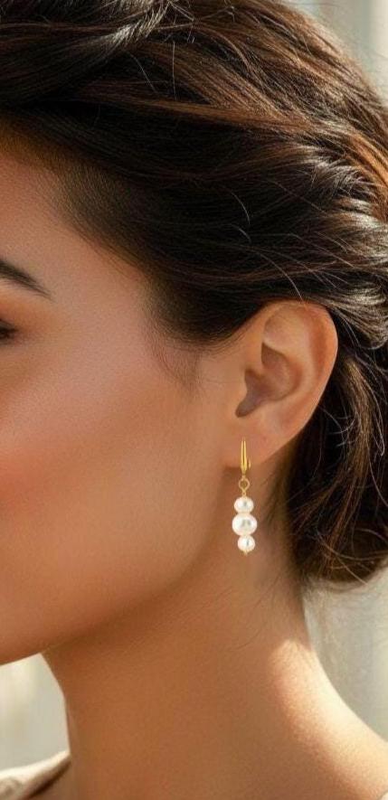 The contrast between the sleek gold studs and the organic glow of real pearls makes these gold pearl earrings truly unique. Perfect for work, weddings, or weekend brunches, they offer effortless versatility and sophistication for any occasion.
