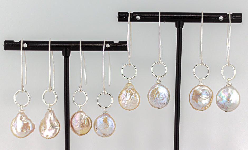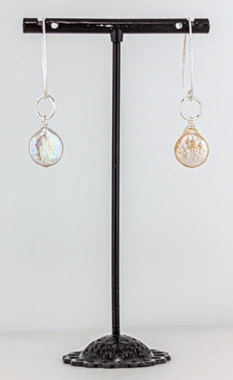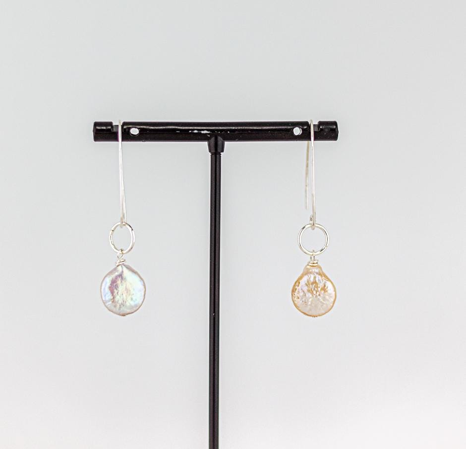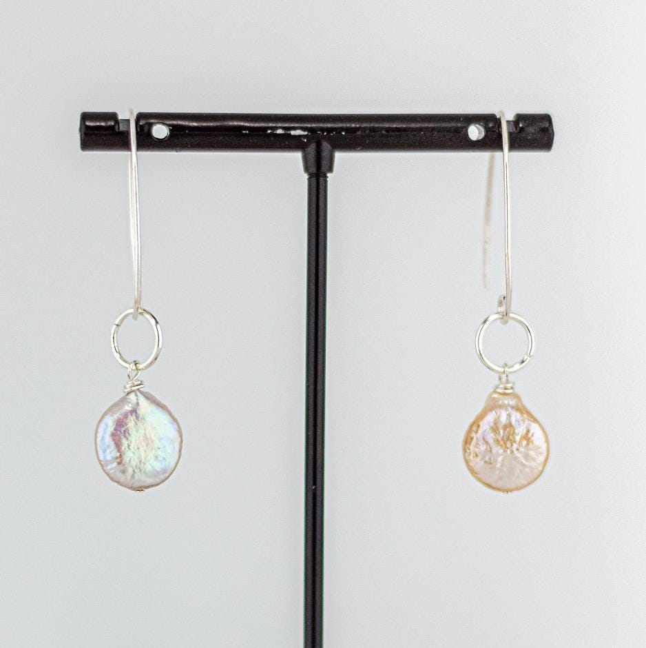 These lightweight pale pink earrings are as comfortable as they are beautiful. Their soft iridescent hues of peach, pink, lavender and coral complements any bohemian outfits with neutral tones, florals, and pastels, making them a lovely choice when you want to add a hint of romantic charm in your pearl jewelry collection.