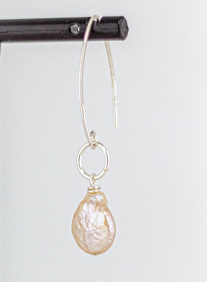 Bring a warm, feminine glow to your look with these Dainty Peach Pearl Drop Earrings, featuring luminous pink-toned pearls and a minimalist silver fishhook style. The subtle shimmer of freshwater pearls offers a soft pop of color, making these unique silver drop earrings perfect for both everyday wear and special occasions.