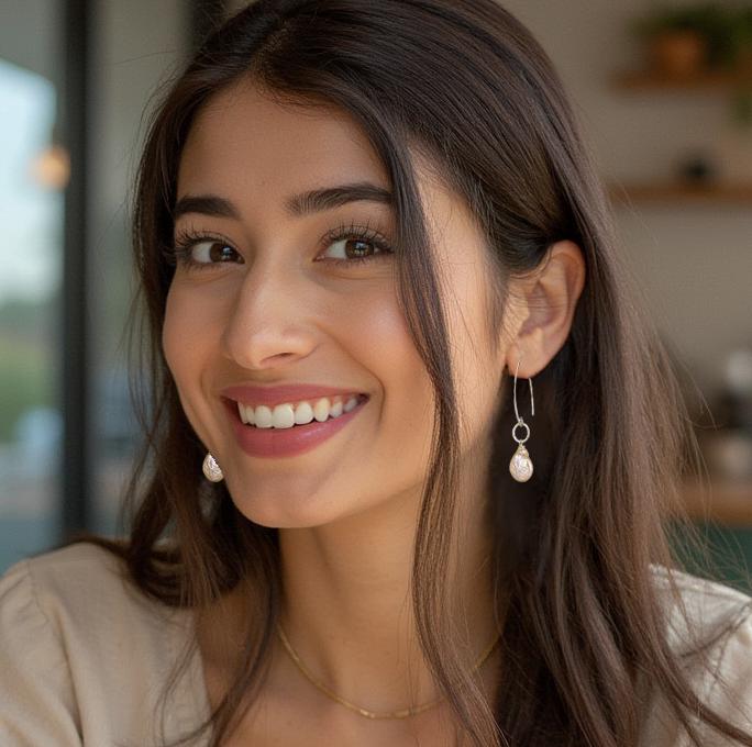 These earrings are so dainty and beautiful! At first they seemed a lot smaller than I expected, but I love the way they look and hang in my ear. Very happy with my purchase:)