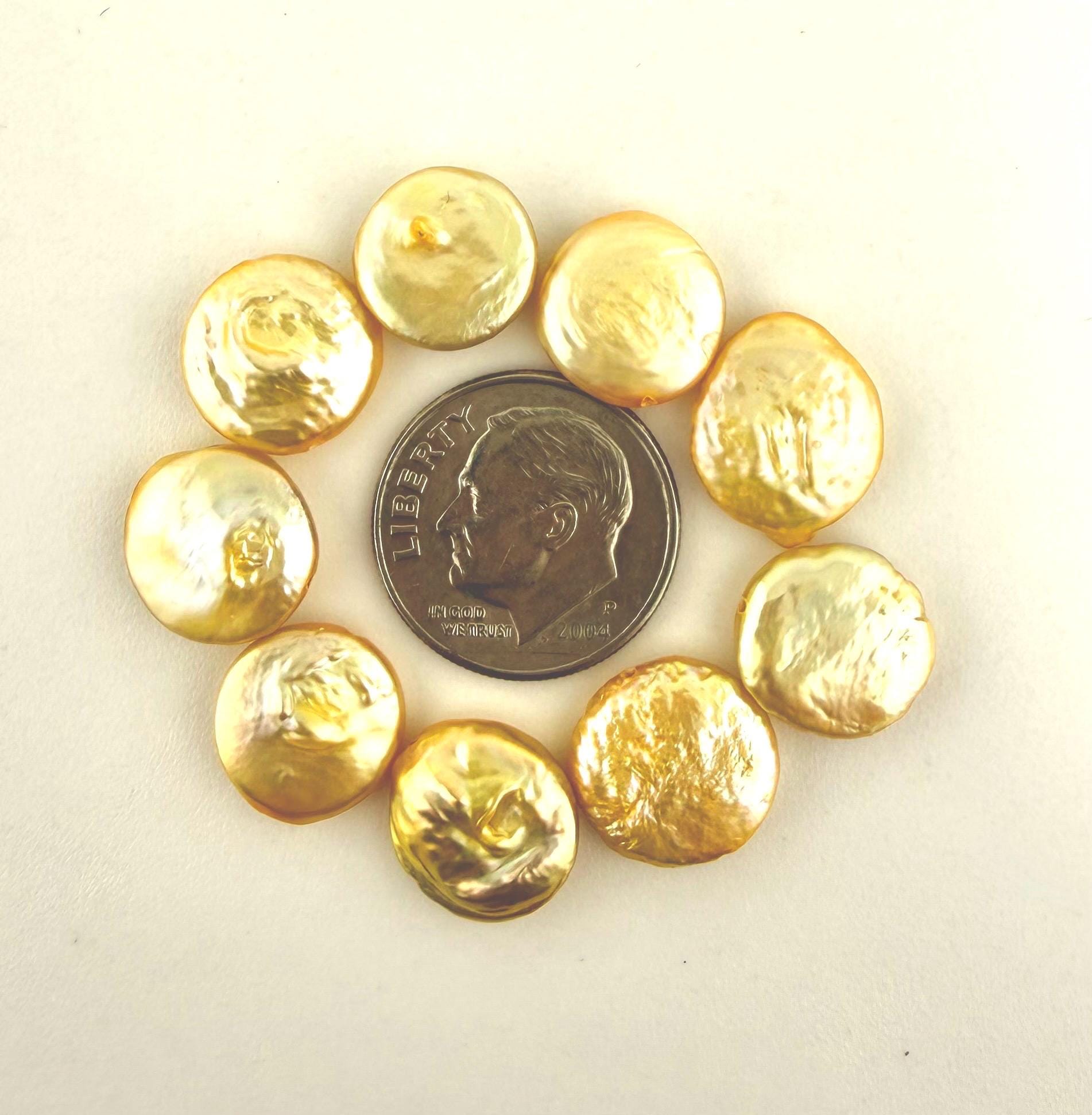 • Genuine freshwater yellow coin pearls with freeform shapes and organic texture.