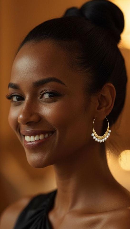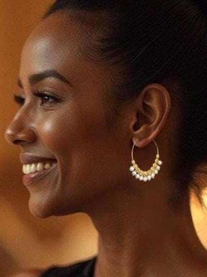 Add a touch of effortless elegance to your look with these stunning gold pearl hoop earrings. Featuring shimmering gold beads paired with dainty petit white pearls, these elegant beaded gold hoop earrings strike the perfect balance between bold and delicate. Lightweight and comfortable for all-day wear, these unique pearl earrings bring a carefree, boho-chic vibe to any outfit. Whether dressing up or keeping it casual, these versatile statement hoops are a timeless addition to your pearl jewelry collection.