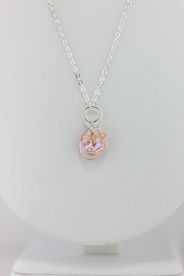 Elevate your everyday elegance with this Dainty Peach Pearl Silver Chain Necklace, featuring a luminous peach pearl accented with glowing peach moonstone beads. Delicately strung on a sleek silver-plated chain, this unique silver pearl necklace captures the soft warmth of sunset tones in a minimalist design that feels both modern and timeless.