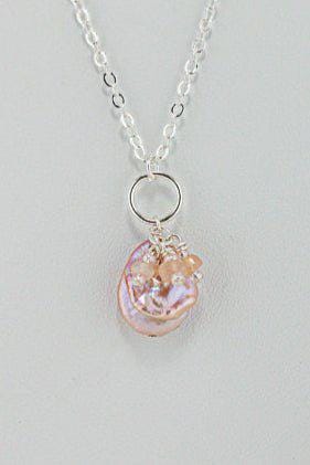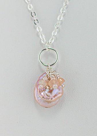 • Genuine freshwater peach coin pearls with subtle iridescence.