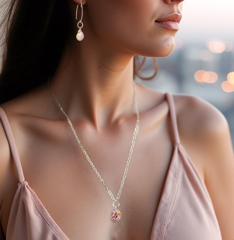 The gentle shimmer of the moonstone beads pairs beautifully with the natural luster of the peach pearl, creating a look that’s feminine, dreamy, and effortlessly chic. Lightweight and hypoallergenic, this necklace is perfect for layering or wearing solo as a delicate statement.