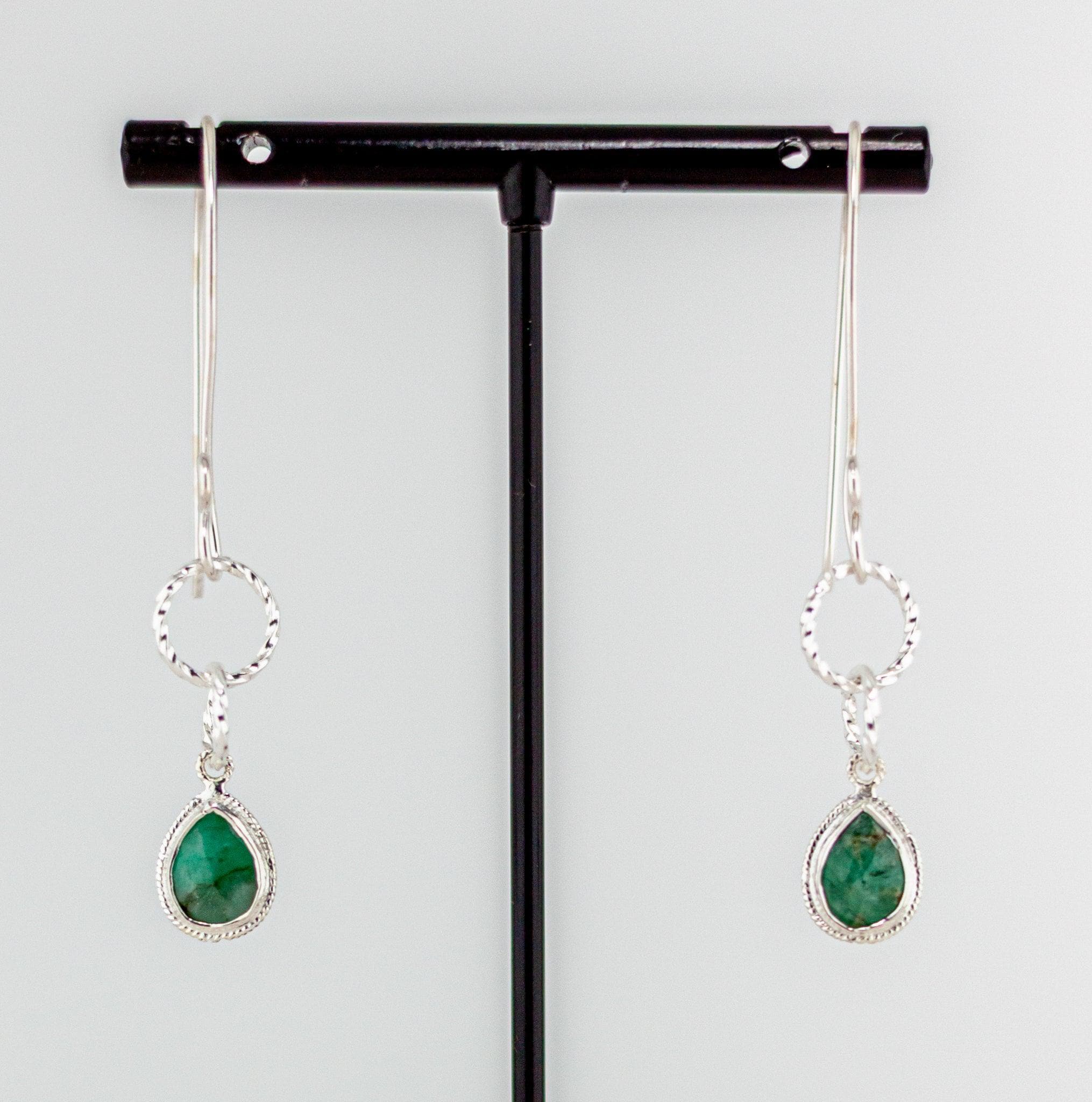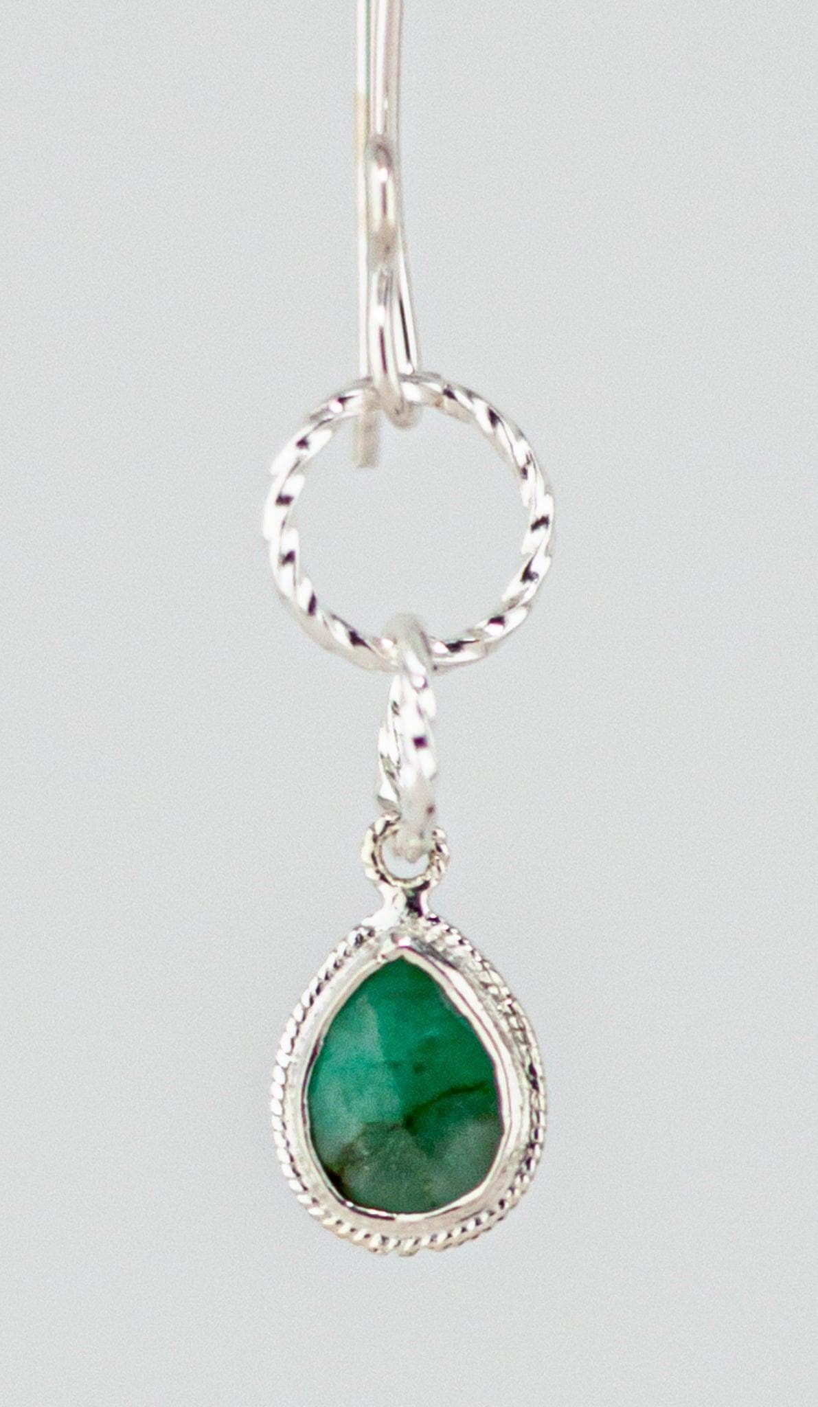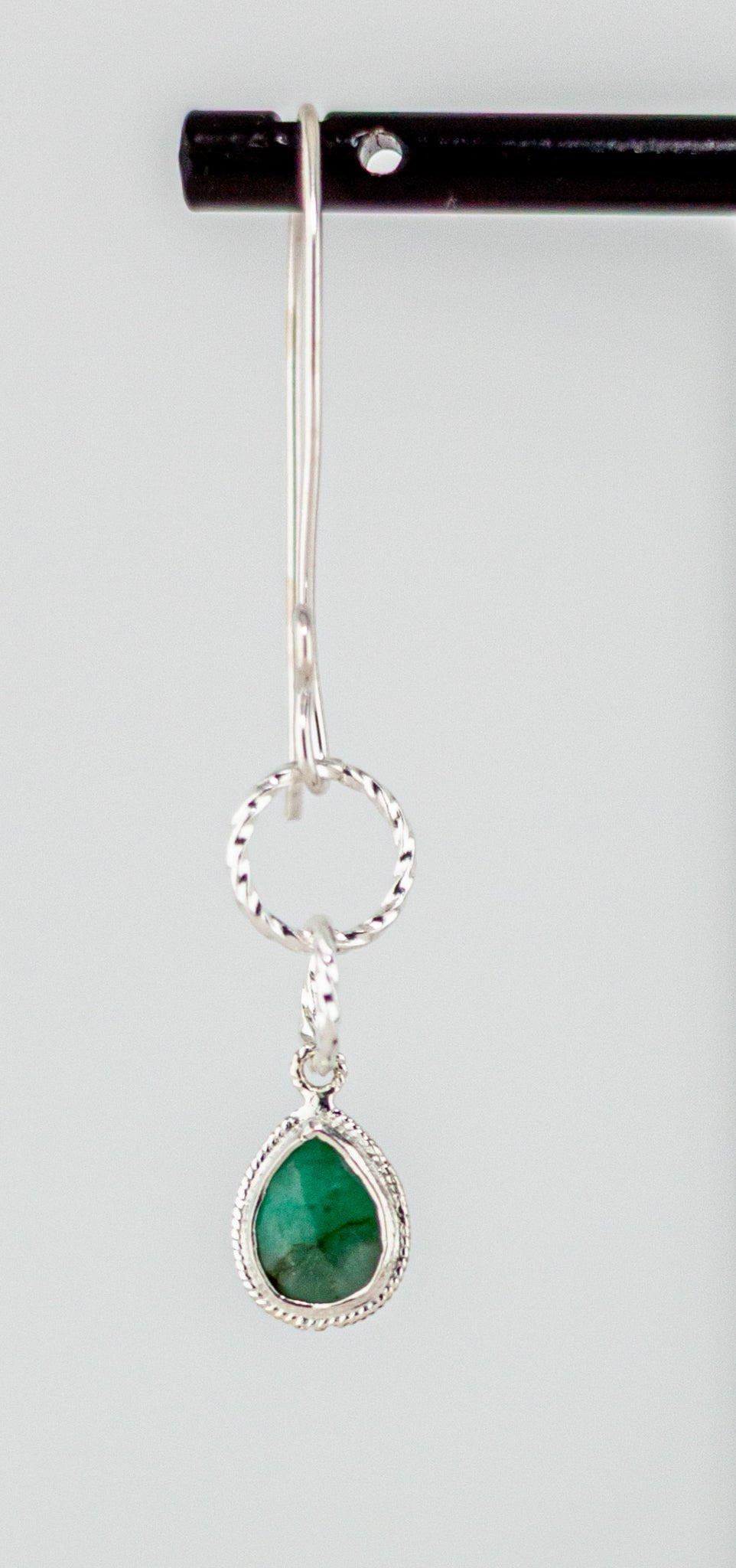 Experience the natural beauty and boho luxe elegance of these Raw Green Emerald earrings. These unique and lovely Sterling Silver Dangle Earrings are perfect for any occasion! Delicately crafted, these pretty boho chic green gemstone earrings feature a faceted raw emerald stones in a uniquely textured sterling silver bezel.