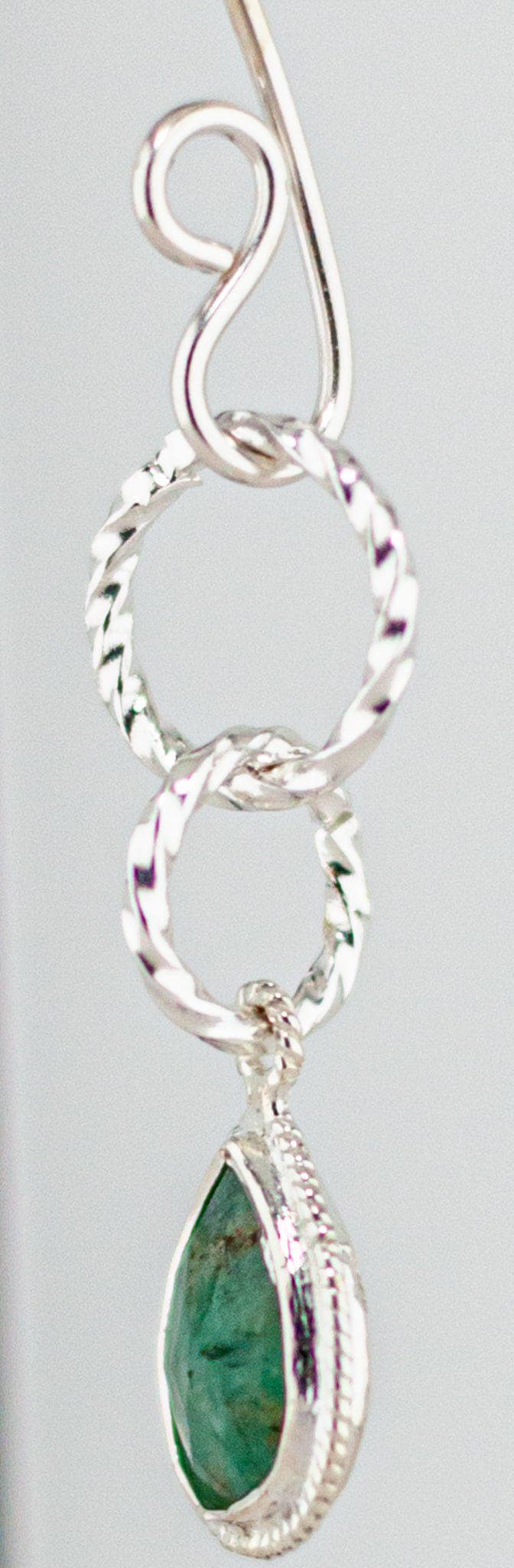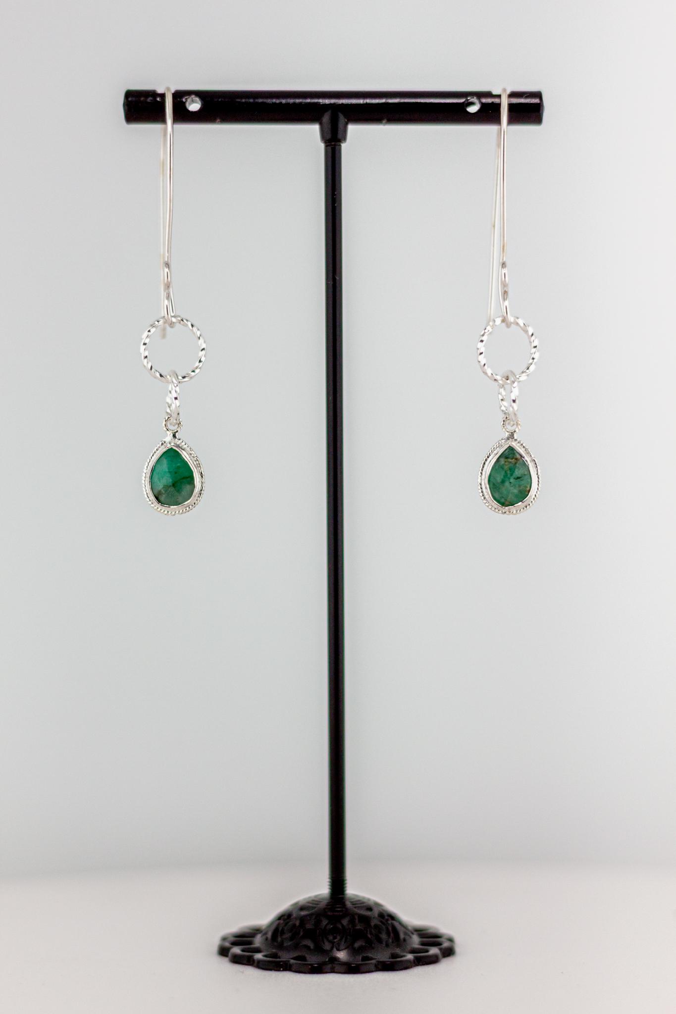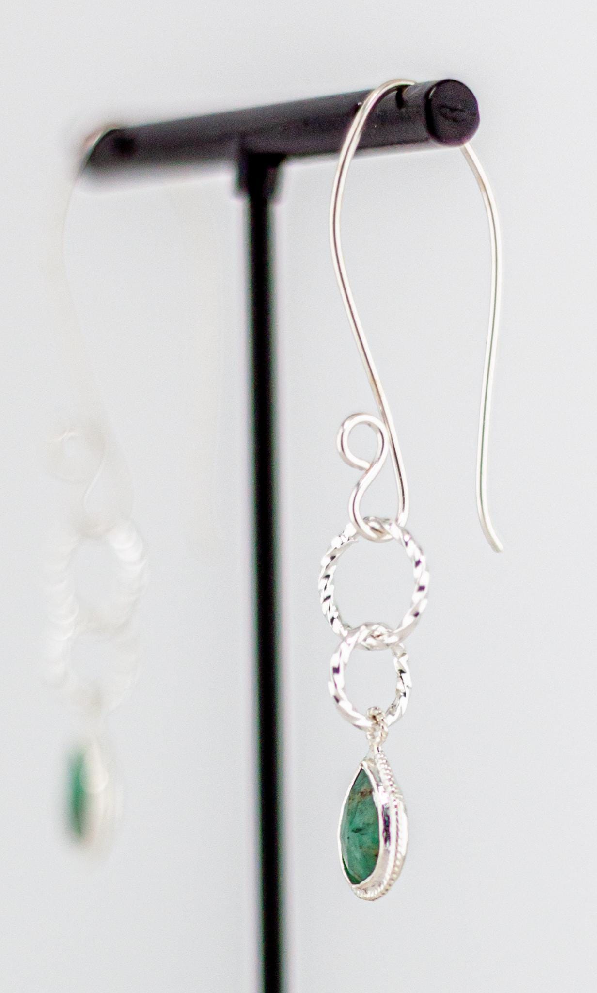 Experience the natural beauty and boho luxe elegance of these Raw Green Emerald earrings. These unique and lovely Sterling Silver Dangle Earrings are perfect for any occasion! Delicately crafted, these pretty boho chic green gemstone earrings feature a faceted raw emerald stones in a uniquely textured sterling silver bezel.