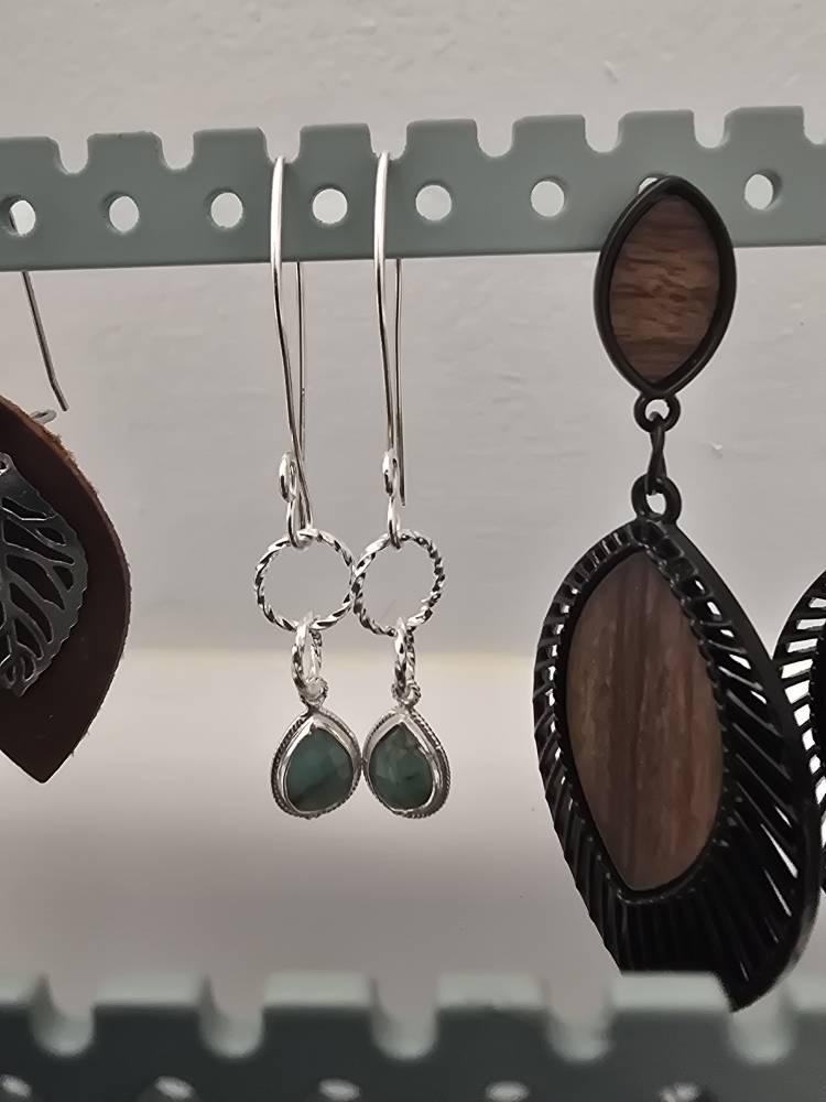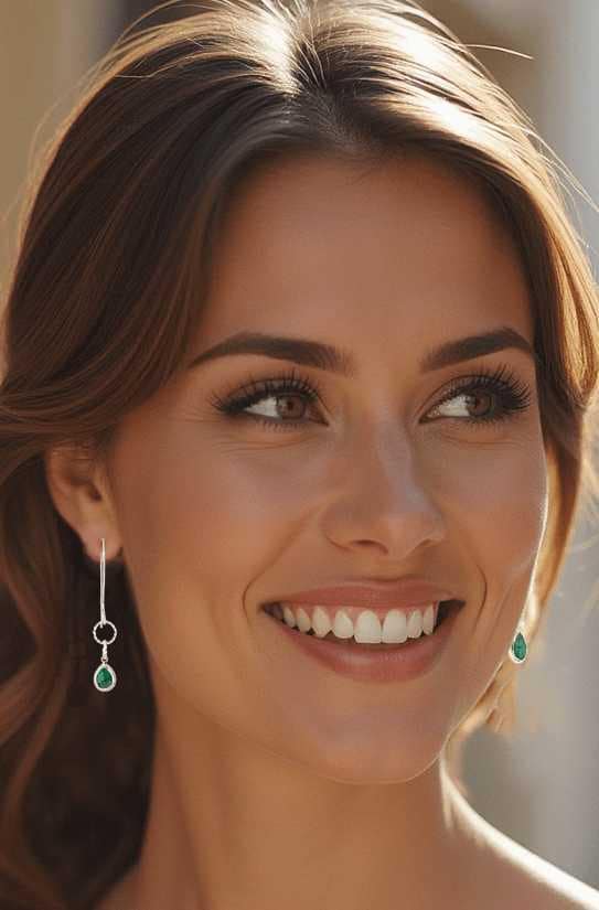 Perfect for adding a modern and minimalist bohemian flair to any outfit, they seamlessly blend elegance with a understated earthy style. Embrace the captivating beauty of these long statement earrings and make them yours today. They are the perfect every day earrings that transition from day to night seamlessly. They are the perfect gift for May birthstone and the 20th or 55th wedding anniversary. These long glamorous emerald earrings pair effortlessly with any outfit, mixing classic girly subtle sparkle and timeless feminine charm with a simple dainty drop earring.