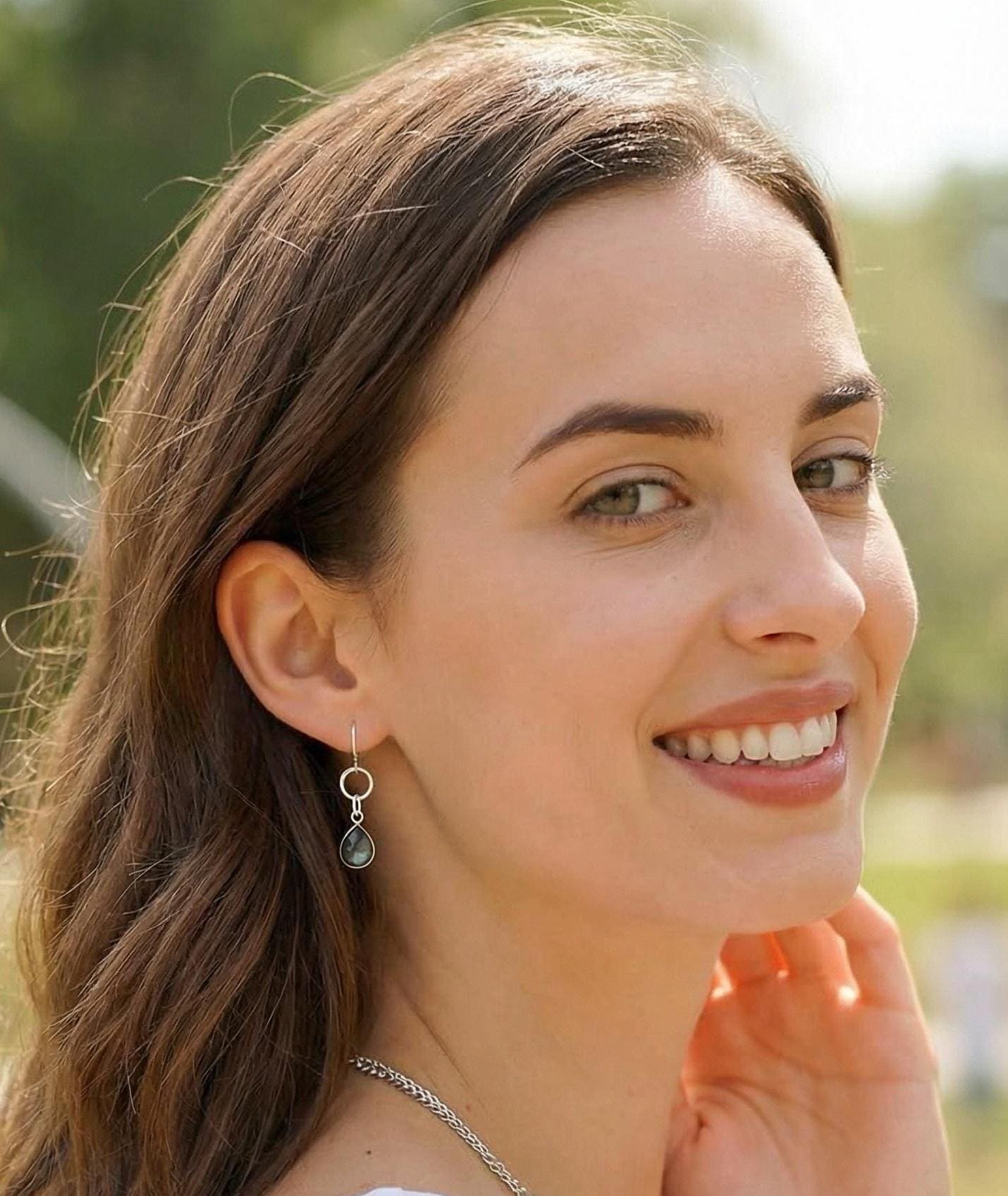 Discover your new favorite pair of everyday earrings with these stunning Labradorite drop earrings! The shimmering Labradorite stones are truly captivating, perfect for adding a touch of dainty elegance to any outfit. These lightweight pretty boho chic silver drop earrings are handcrafted with love and attention to detail, these simple grey earrings are sure to become your go-to for every occasion from the office to happy hour and boho weddings. Treat yourself or gift a loved one to a truly unique piece of refined modern labradorite jewelry that will make you shine with understated elegance wherever you go!