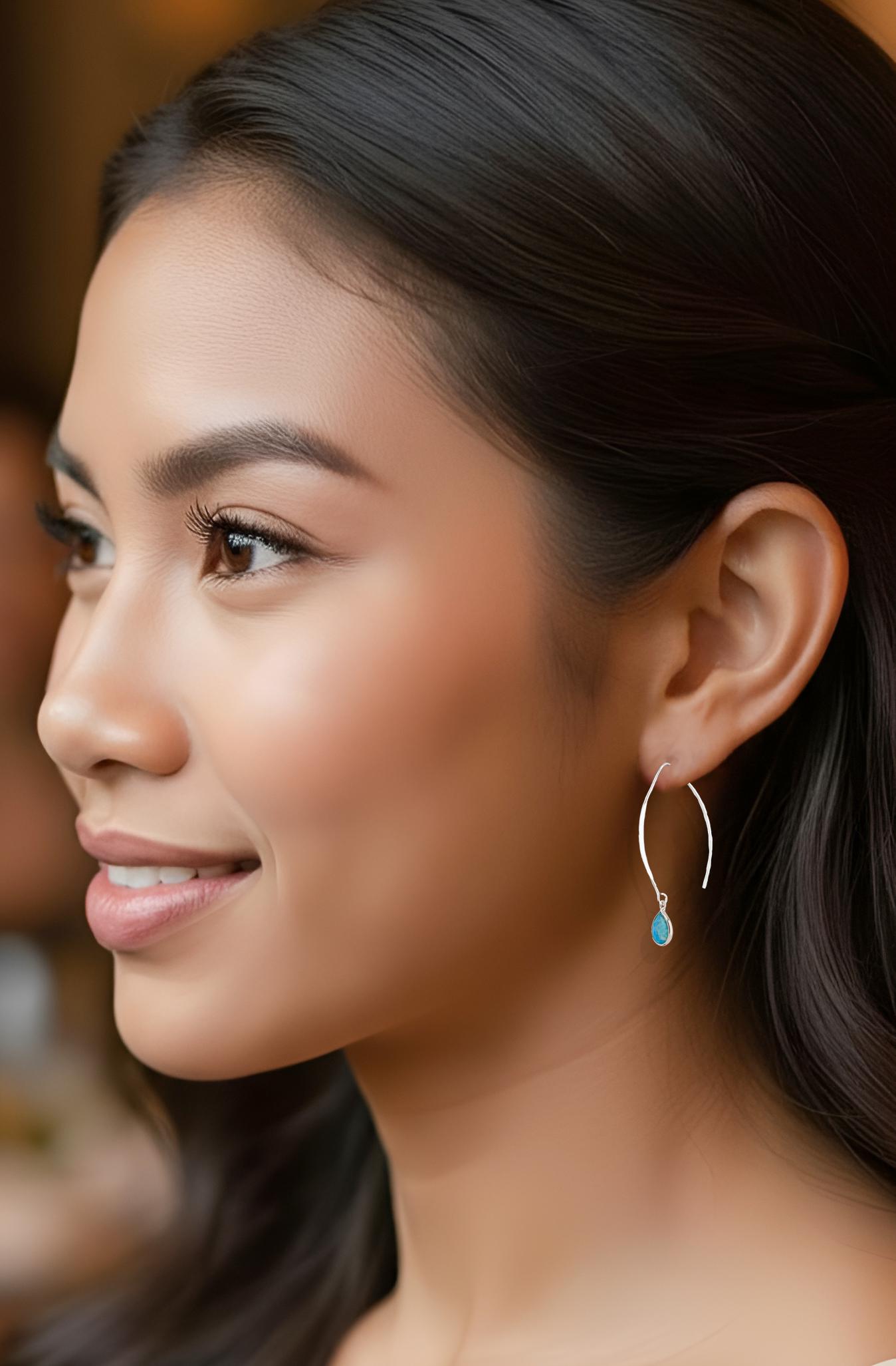 Add a timeless pop of ocean blue to your jewelry collection with these Genuine Turquoise Teardrop Earrings. Featuring real turquoise gemstones in a smooth, elegant teardrop shape, these long silver earrings are designed in a minimalist drop silhouette that blends boho chic style with everyday elegance. The sleek silver fishhook ear wires are lightweight, hypoallergenic, and perfect for all-day comfort. The striking turquoise stones offer a naturally bold yet soothing hue, symbolizing protection and calm, making these earrings a beautiful and meaningful accessory for modern bohemian fashionistas.