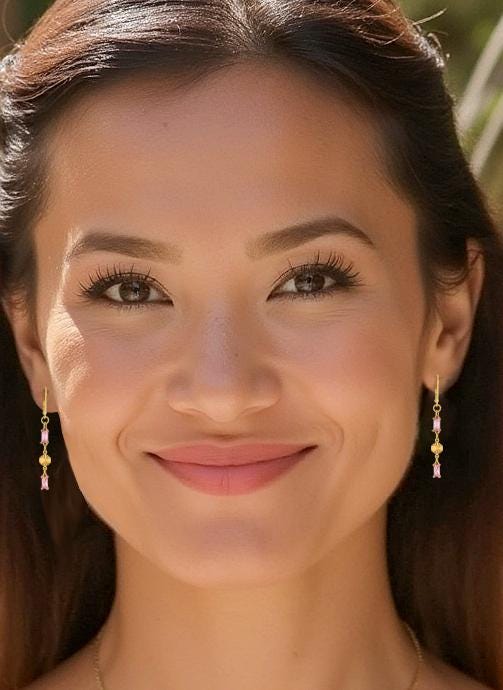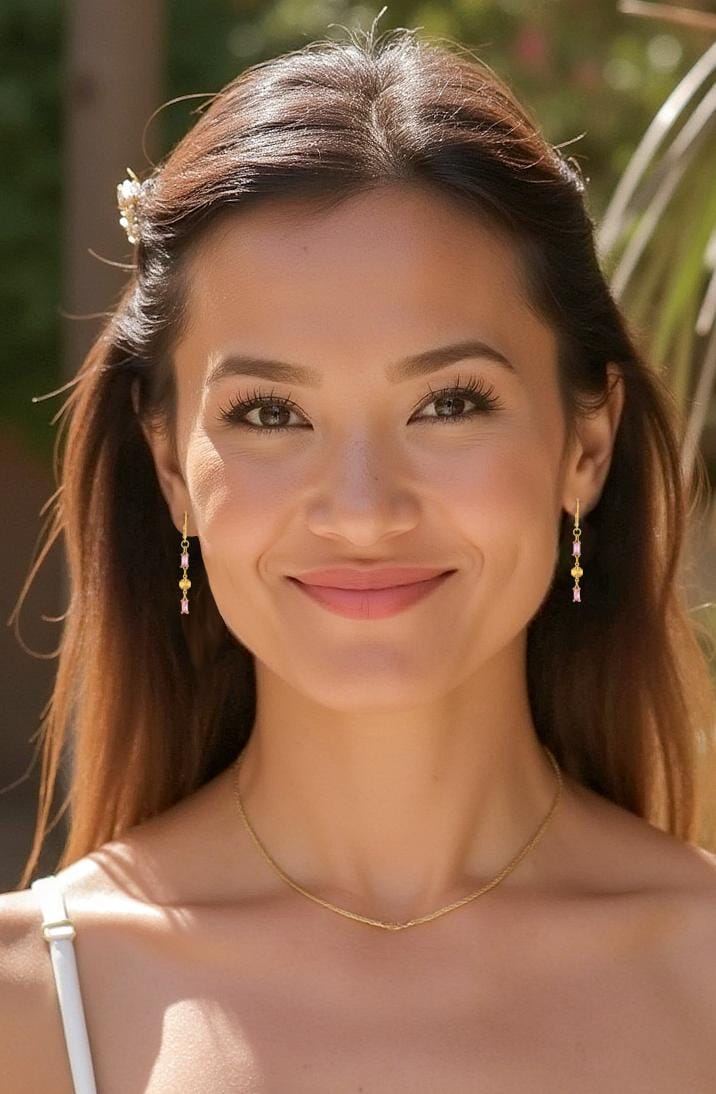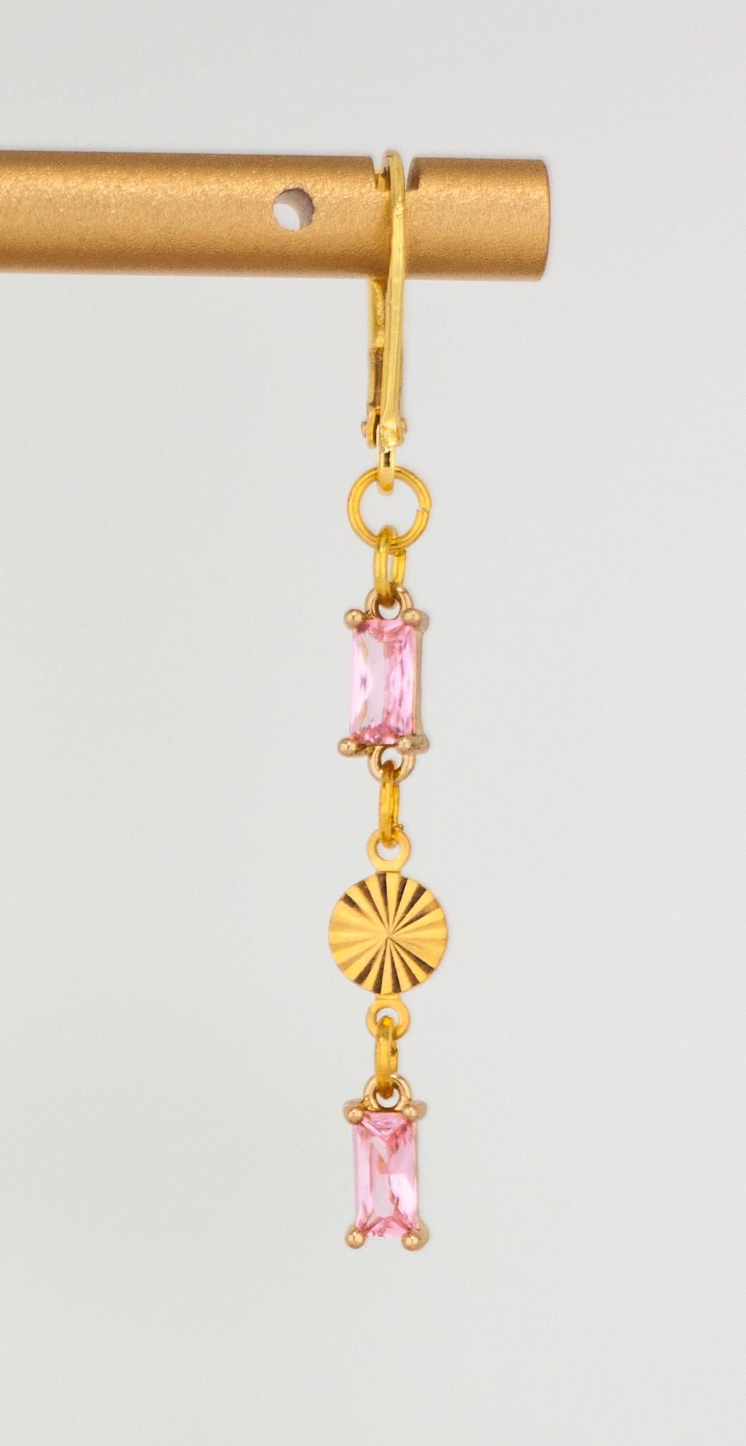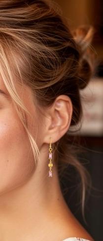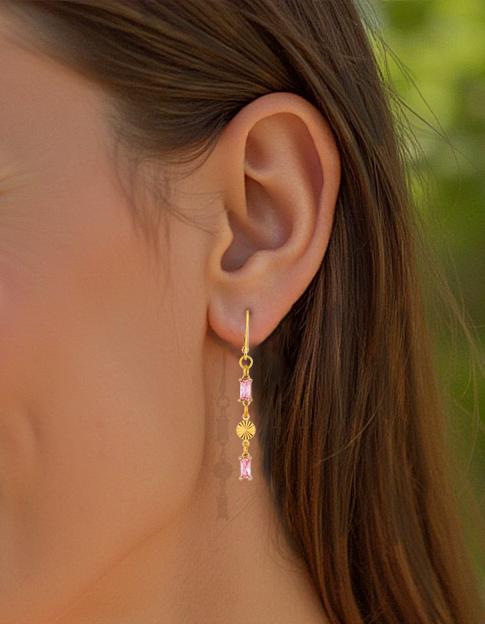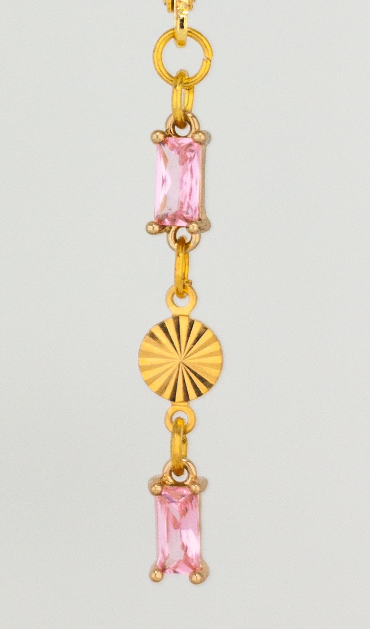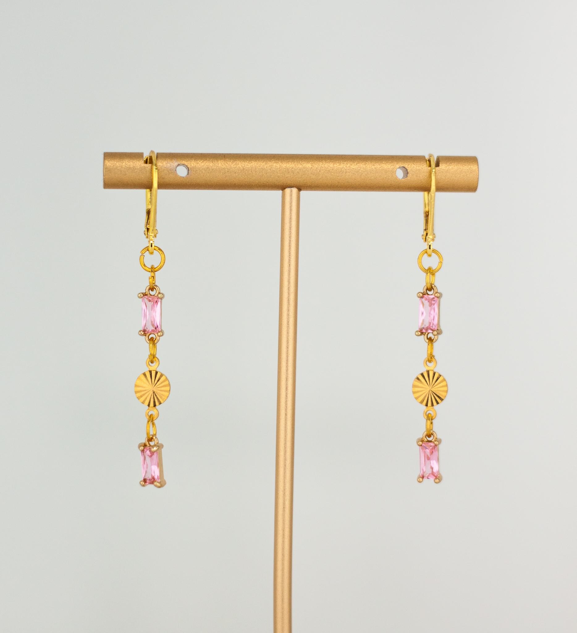Add a touch of elegance to your look with these Chic Rose Pink Drop Earrings. These dainty gold drop earrings, feature sparkling light pink glass accents. The delicate rectangle-shaped gold links and shimmering pink glass drops create a beautiful balance of modern sophistication and timeless feminine style. Perfect for everyday wear and special occasions, these lightweight glass earrings offer eye-catching subtle sparkle that won’t overpower your look. Crafted from high-quality, hypoallergenic materials, these pink drop earrings are designed for comfort and lasting beauty. Elevate your jewelry collection with these timeless and pretty sparkling pink and gold earrings.