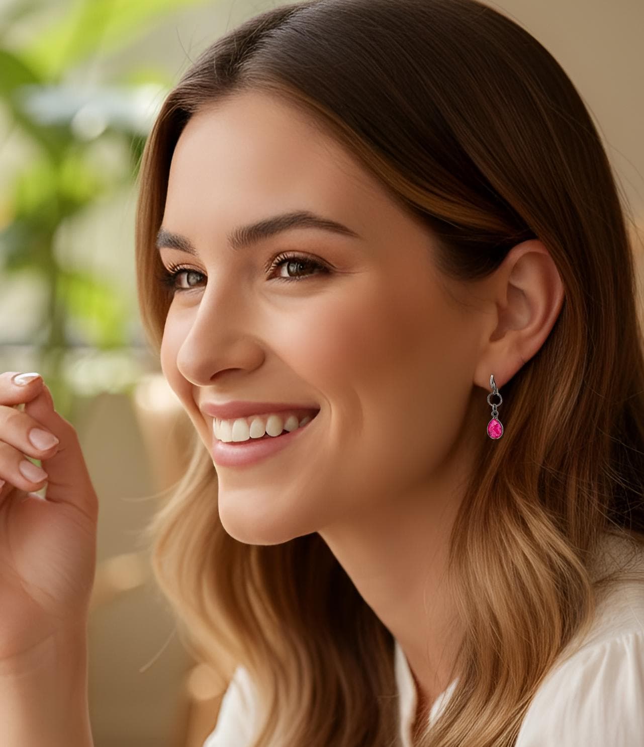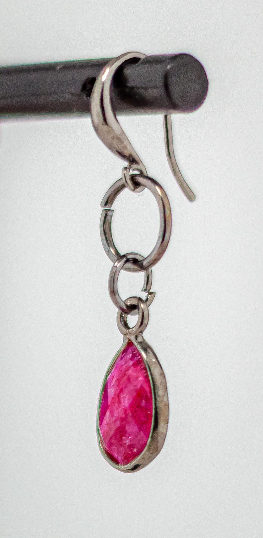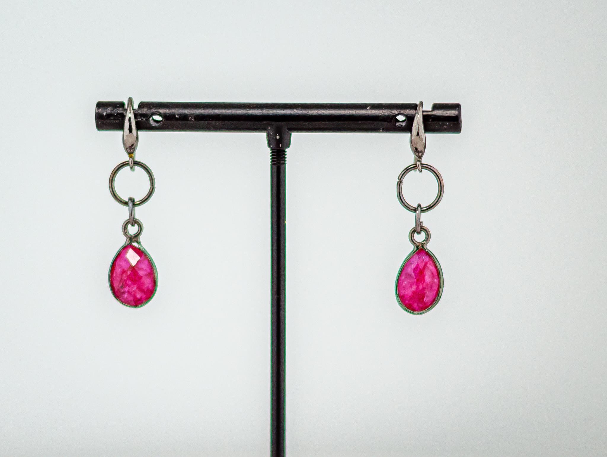 Get ready to fall in love with these captivating Shimmering Red Quartz Earrings! Handcrafted with care, these dainty black and pink drop earrings will elevate your everyday look with their minimalist, shimmery, and versatile design. The sleek modern edge of sleek dark grey ear wires paired with vivid magenta quartz gemstones creates a cool, understated contrast that feels both chic and bold. Perfect for festivals, the office, date night, or even a boho wedding, these earrings transition effortlessly from day to night. Treat yourself or gift a loved one a truly unique piece of refined modern red quartz jewelry that shines with feminine elegance and contemporary boho chic style.