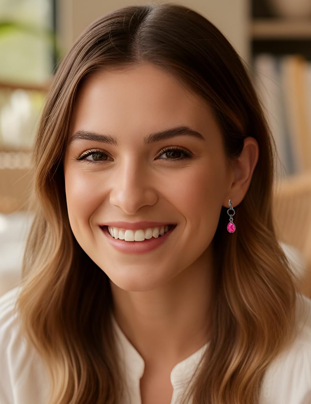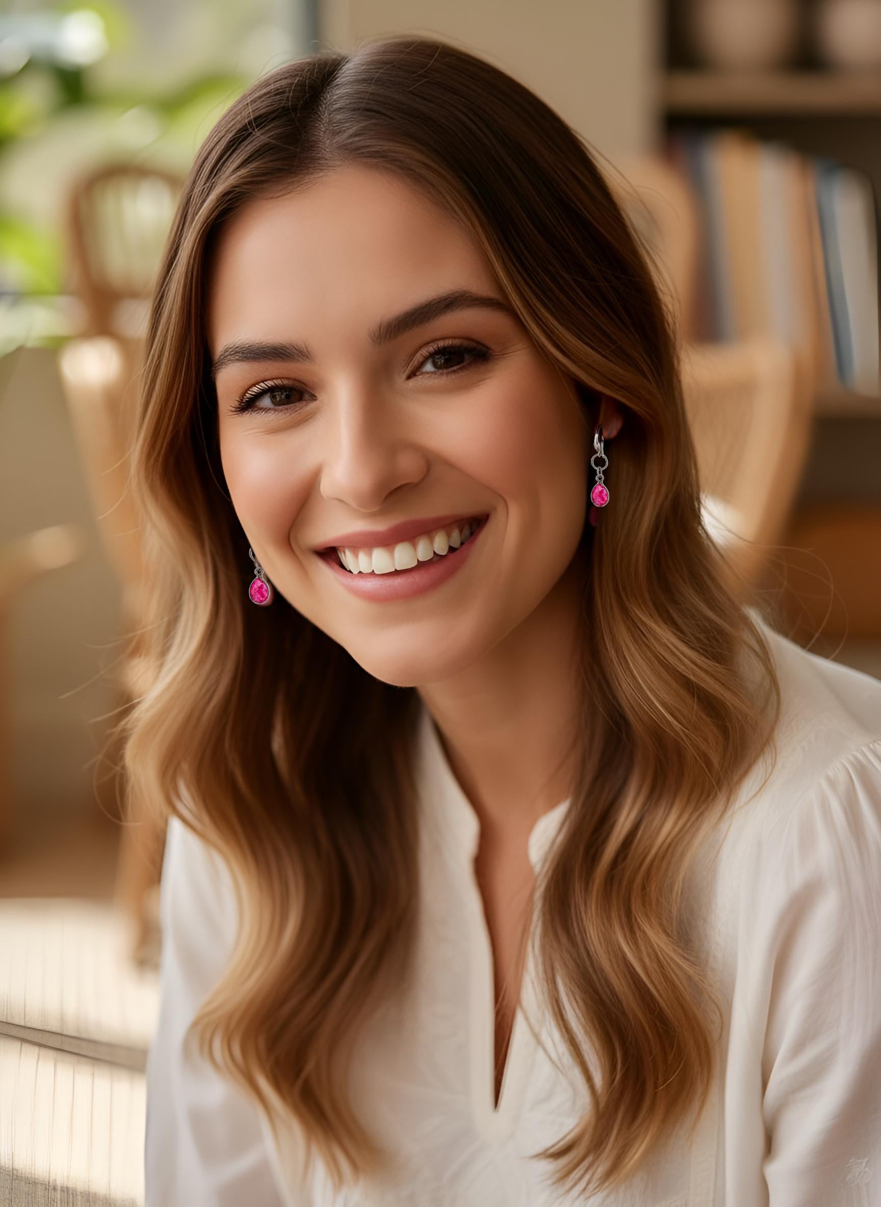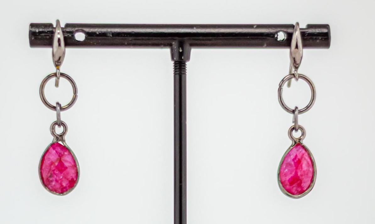 Genuine red quartz gemstones. These beautiful teardrop-shaped quartz stones shimmer with vivid, bright, and dark hot pink hues, glowing with natural vibrancy. Every pair is unique, with slight natural variations in size, color, and transparency of the stones; your purchased pair may be slightly lighter or darker than those pictured.