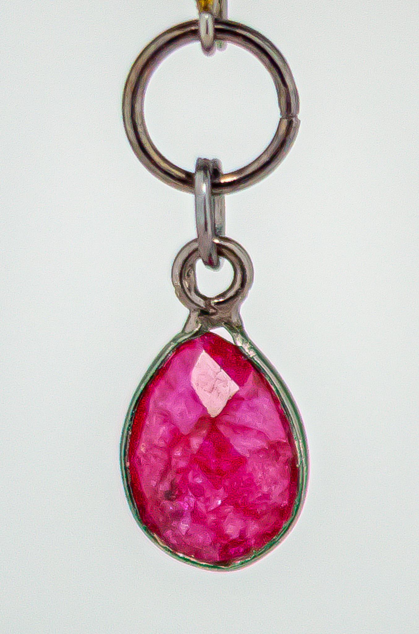 • Teardrop-shaped quartz stones with vivid, bright, and dark hot pink hues.