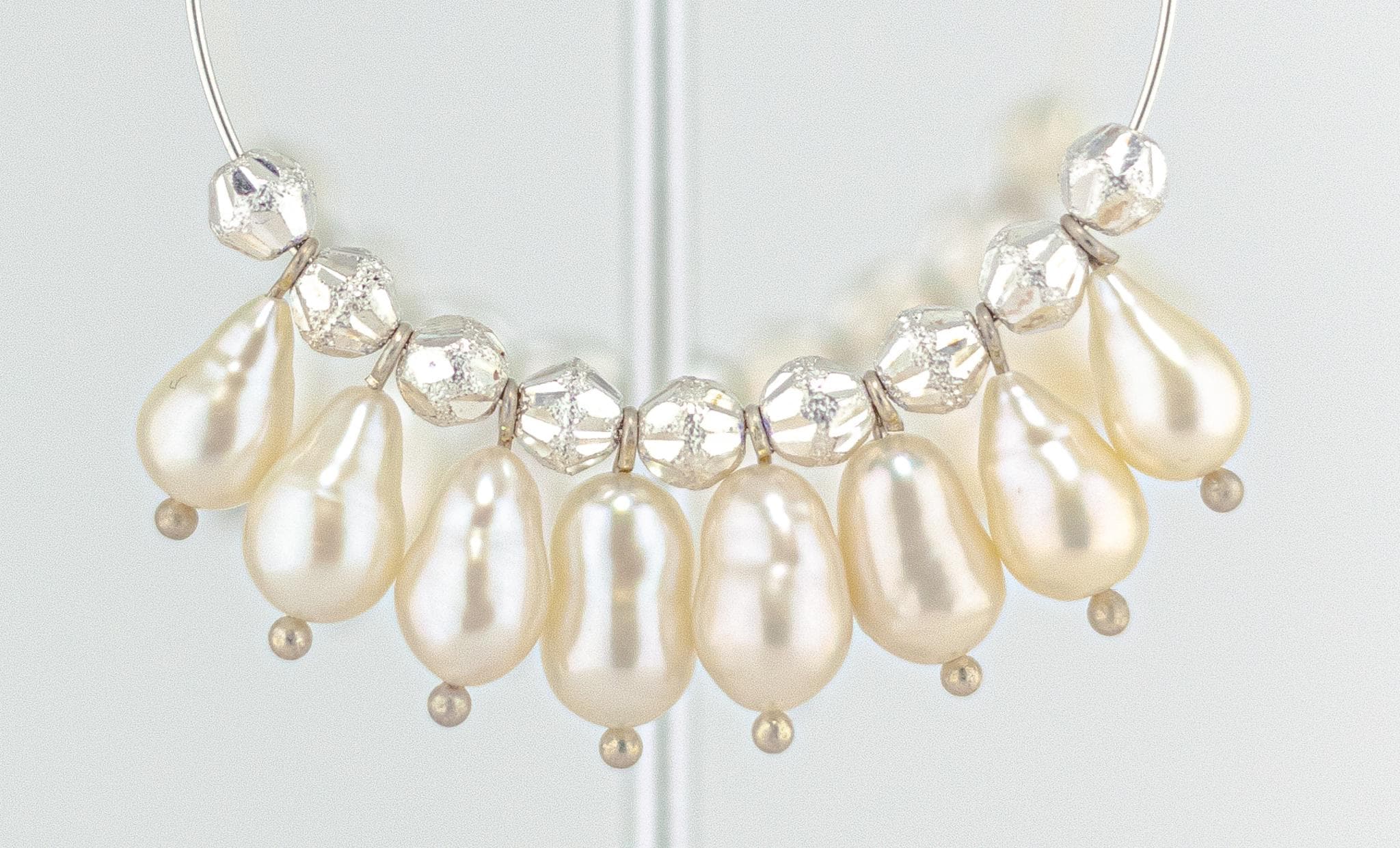 • The silver spacer beads have matte and shiny textures.