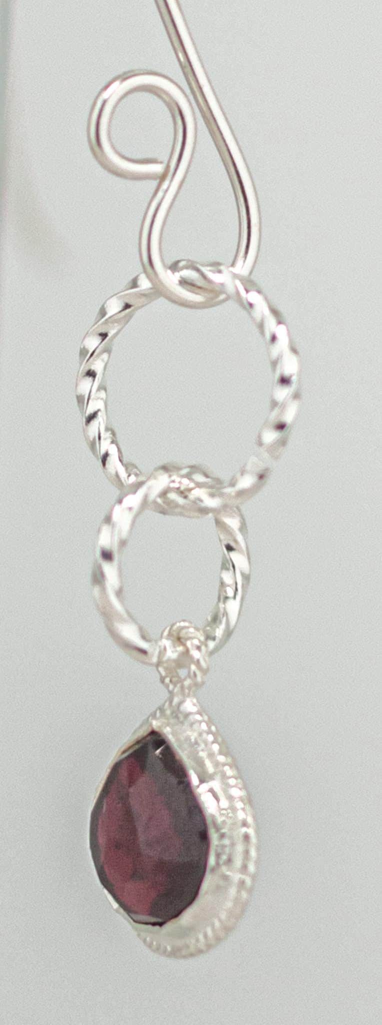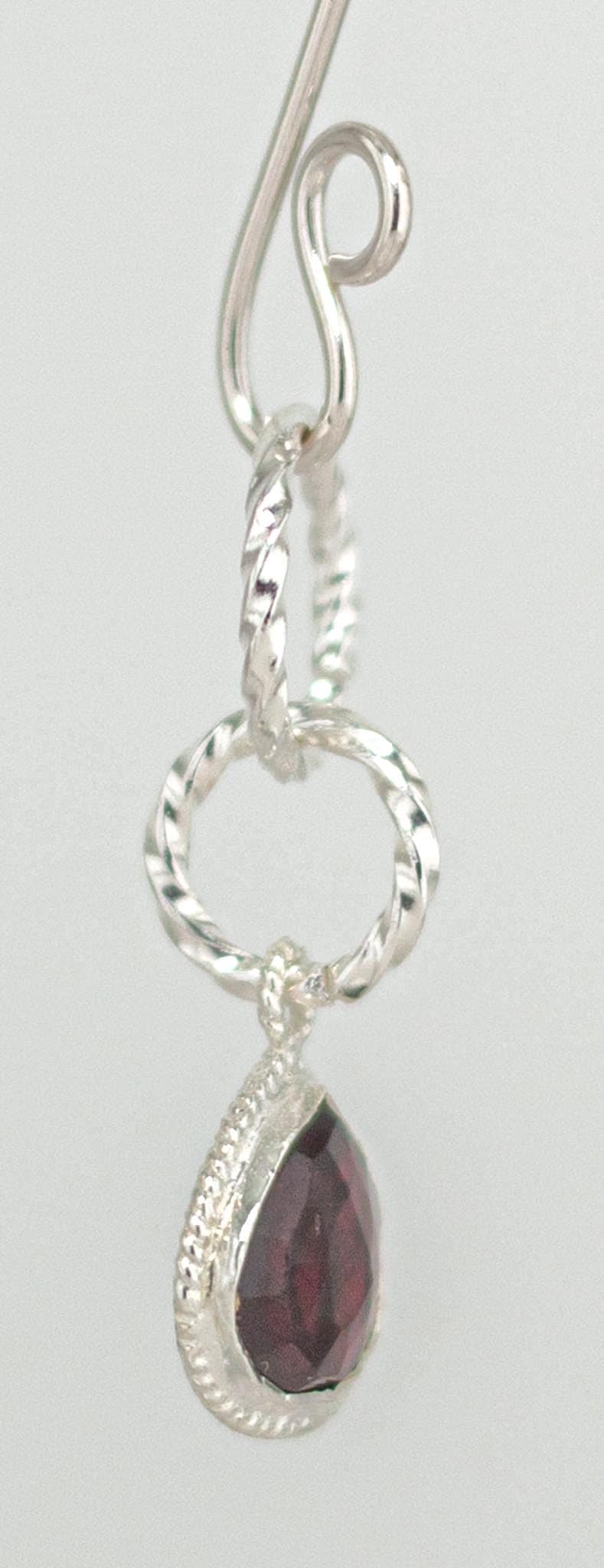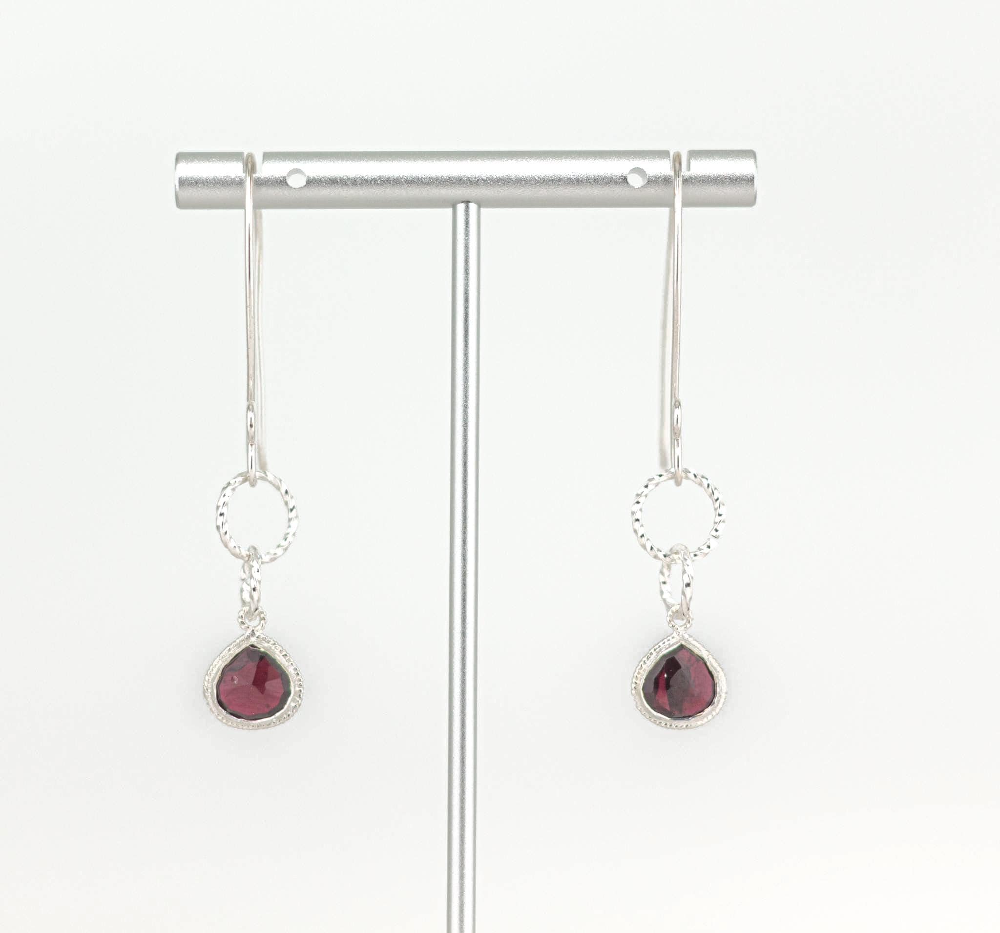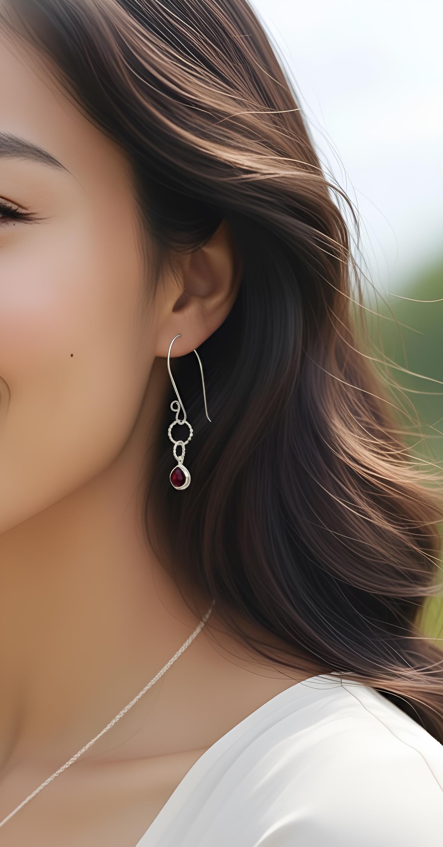 Experience the natural beauty and boho luxe elegance of these natural garnet earrings. These unique and lovely Sterling Silver Dangle Earrings are perfect for any occasion! Delicately crafted, these pretty boho chic red gemstone earrings feature a faceted garnet stones in a uniquely textured sterling silver bezel.